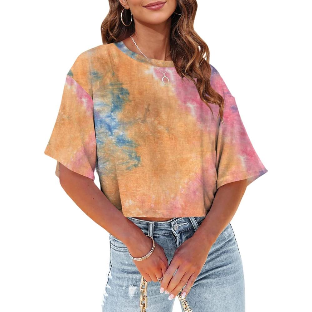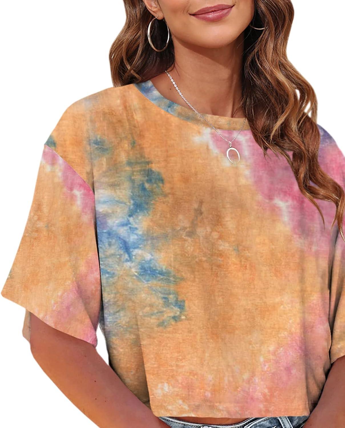 Tankaneo Women Half Sleeve Cropped T-Shirts Drop Shoulder Round Neck Crop Tops Casual Summer Solid Color Basic Tees(19-orange)