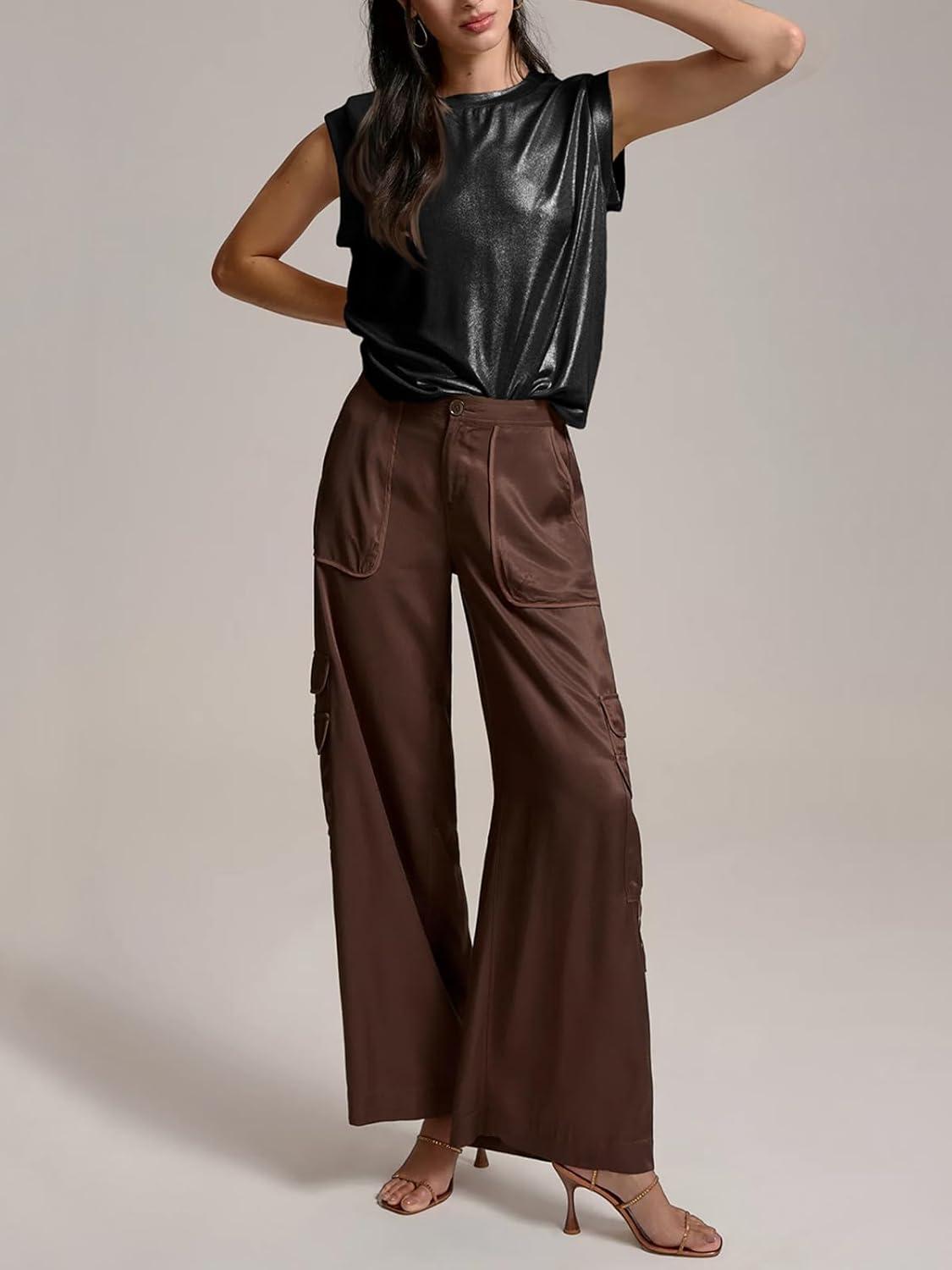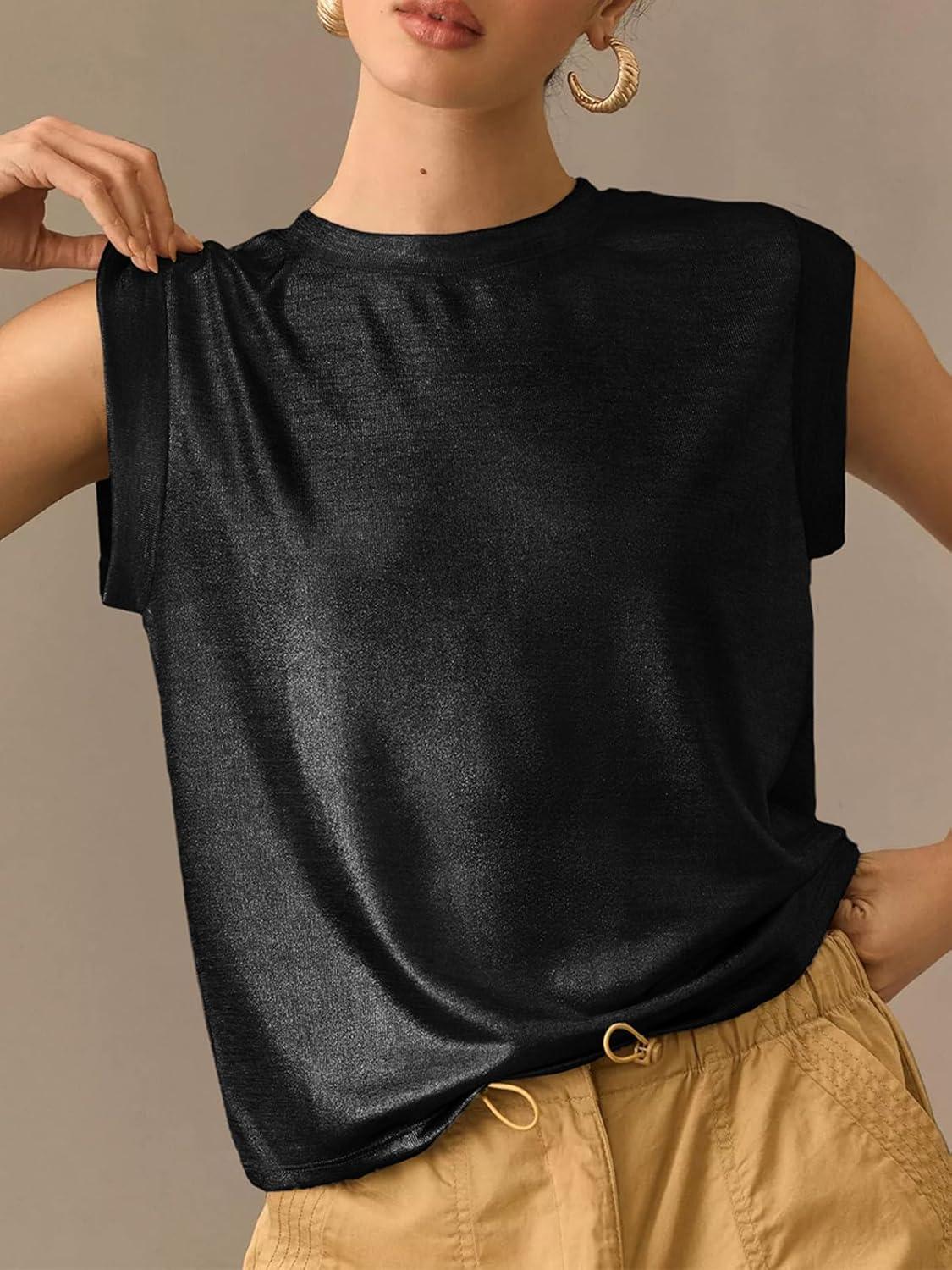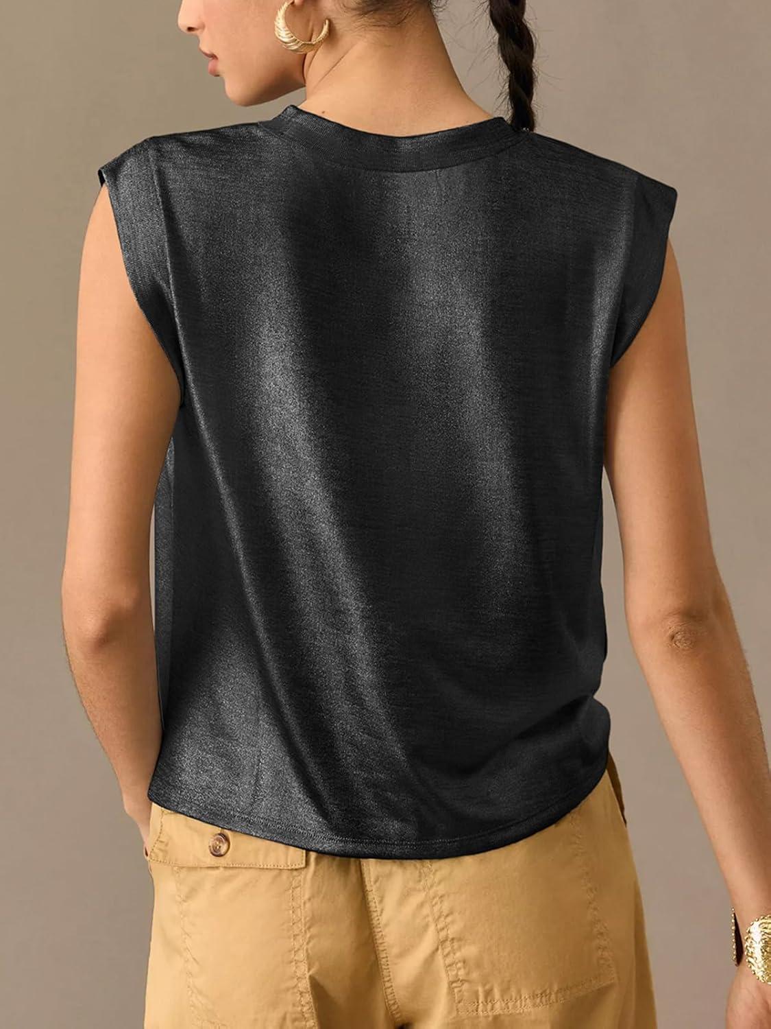 Tankaneo Women Sparkle Casual Tank Tops Summer Sleeveless Crewneck Vest Glitter Muscle Tee Shirts(Black)