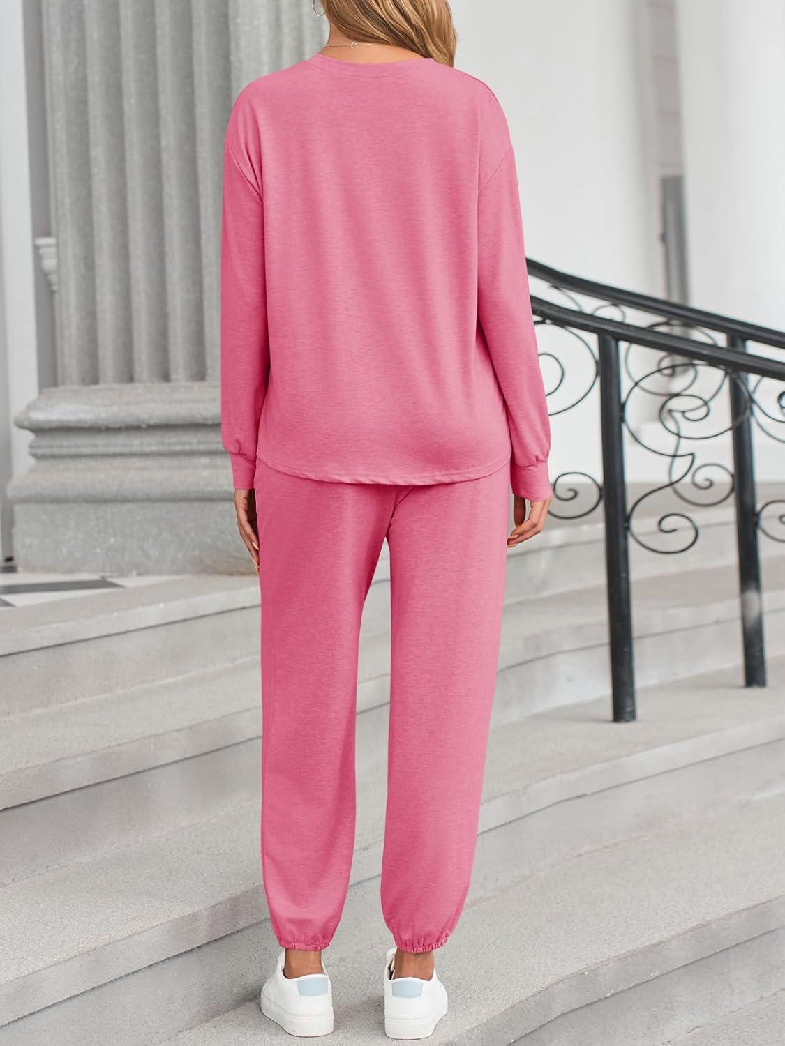 Tankaneo Womens 2 Piece Outfits Lounge Sets Casual Long Sleeve Crewneck Pullover Sweatshirt Jogger Sweatpants Tracksuit Set(Pink)