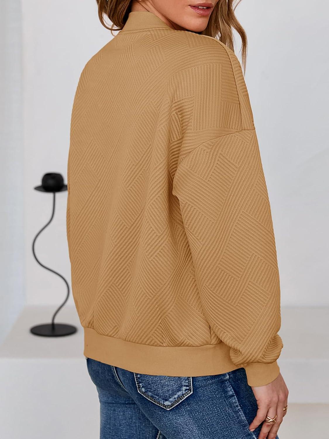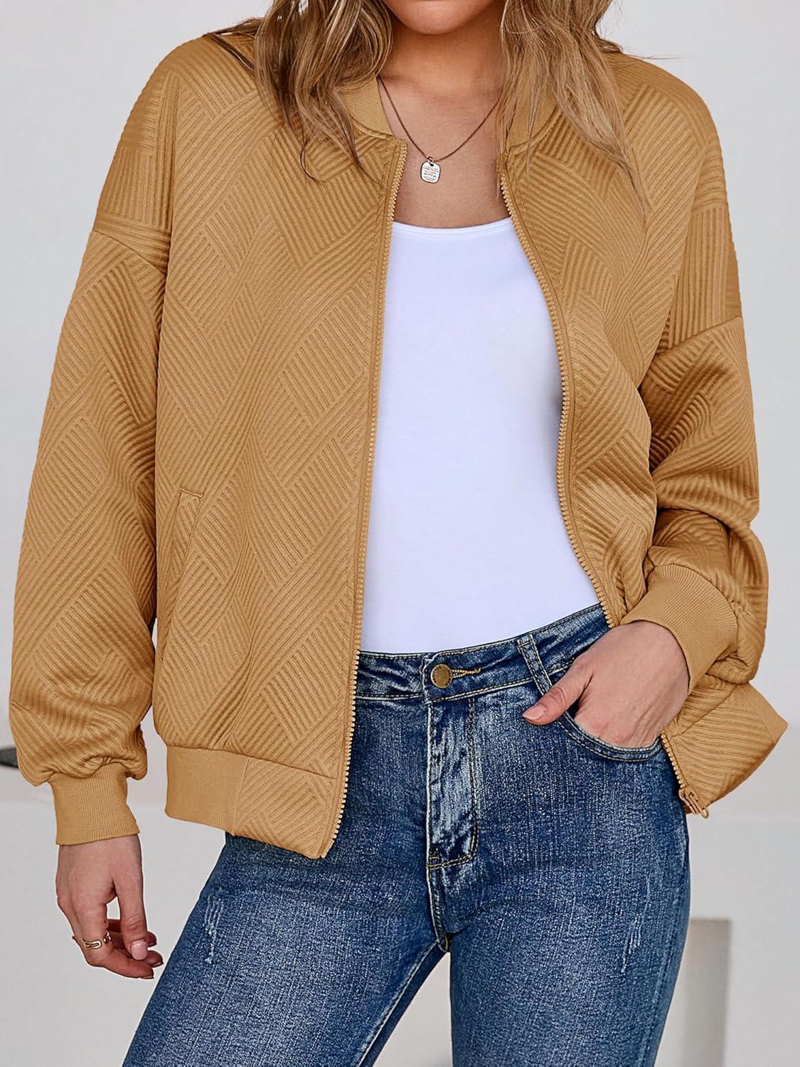 Tankaneo Womens Bomber Jacket Zip Up Casual Jackets Lightweight Trendy Outerwear Coat with Pockets(Camel)