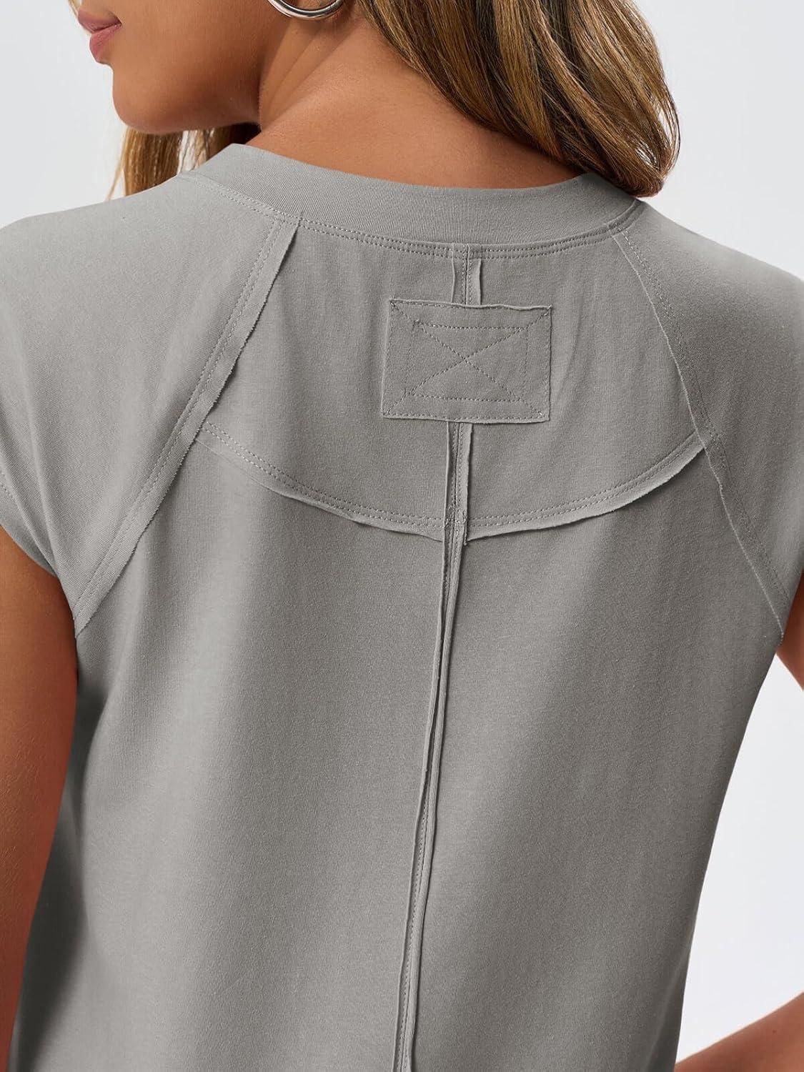Tankaneo Womens Cap Sleeve Tank Tops Summer Casual Crew Neck Cotton T-Shirts Loose Fit Basic Tee Shirts(Grey)