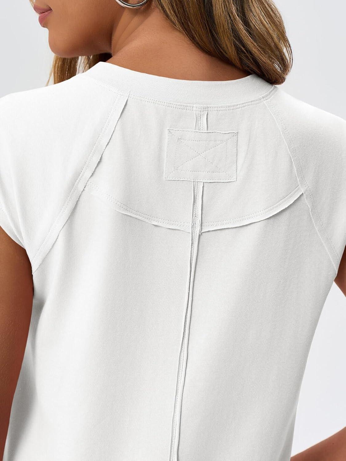 Tankaneo Womens Cap Sleeve Tank Tops Summer Casual Crew Neck Cotton T-Shirts Loose Fit Basic Tee Shirts(White)