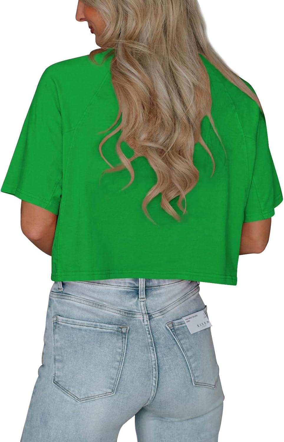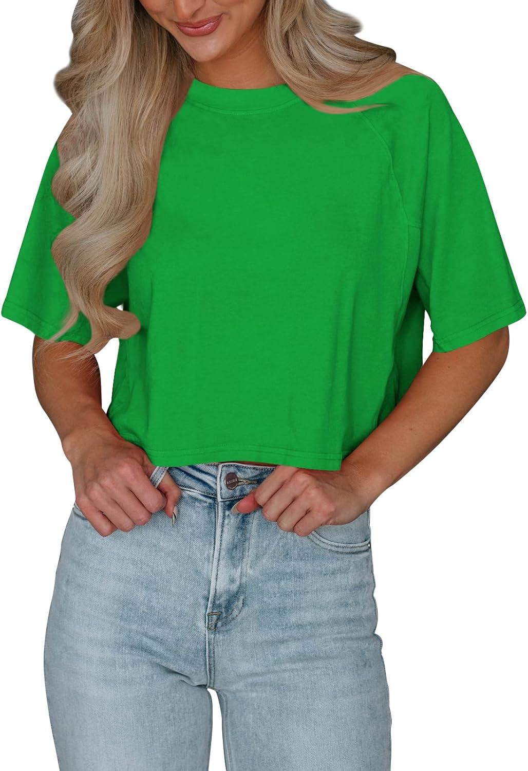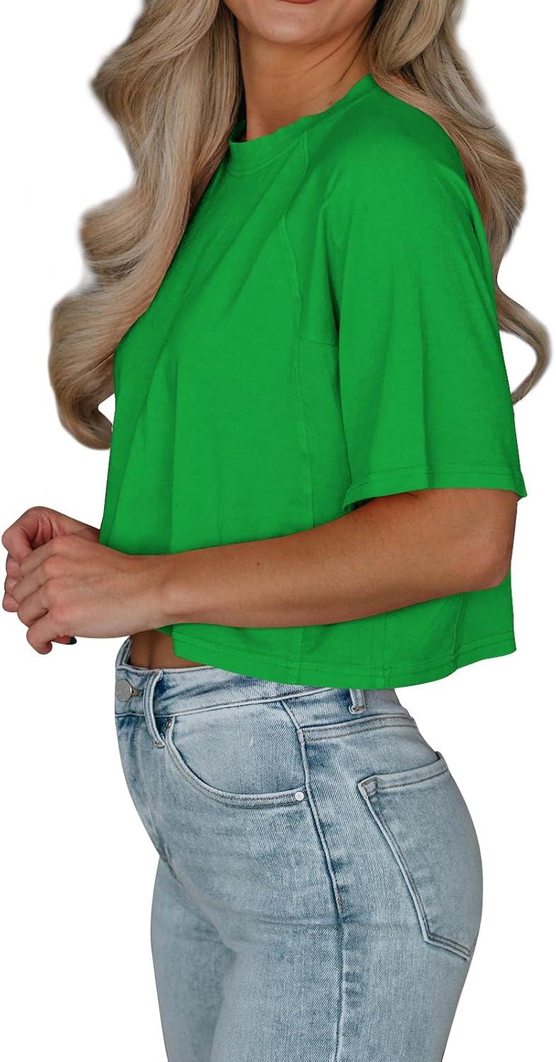 Tankaneo Womens Casual Half Sleeve Cropped T-Shirts Summer Crop Tops Solid Color Round Neck Basic Crop Tees(08-green)
