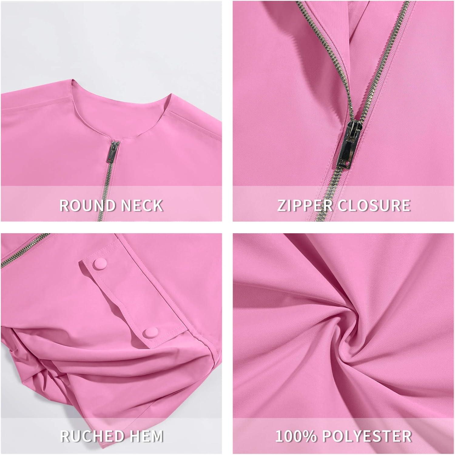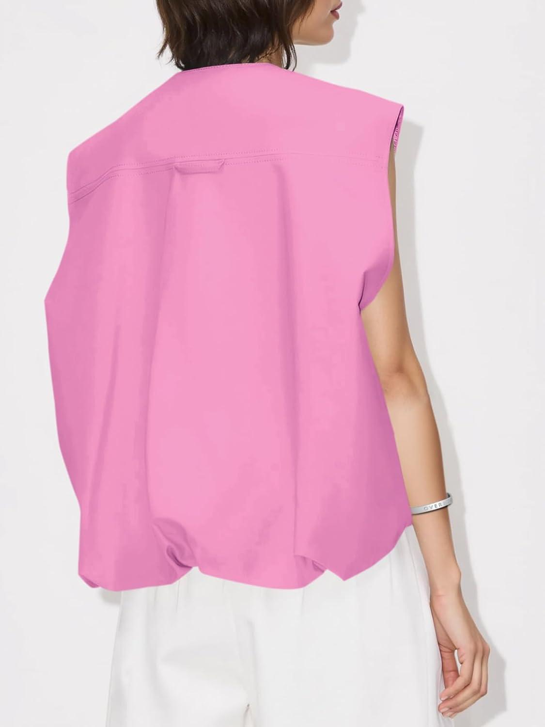 Tankaneo Womens Casual Zip Up Vest Cargo Oversized Ruched Hem Sleeveless Blazer Jackets Tops(Bright Pink)