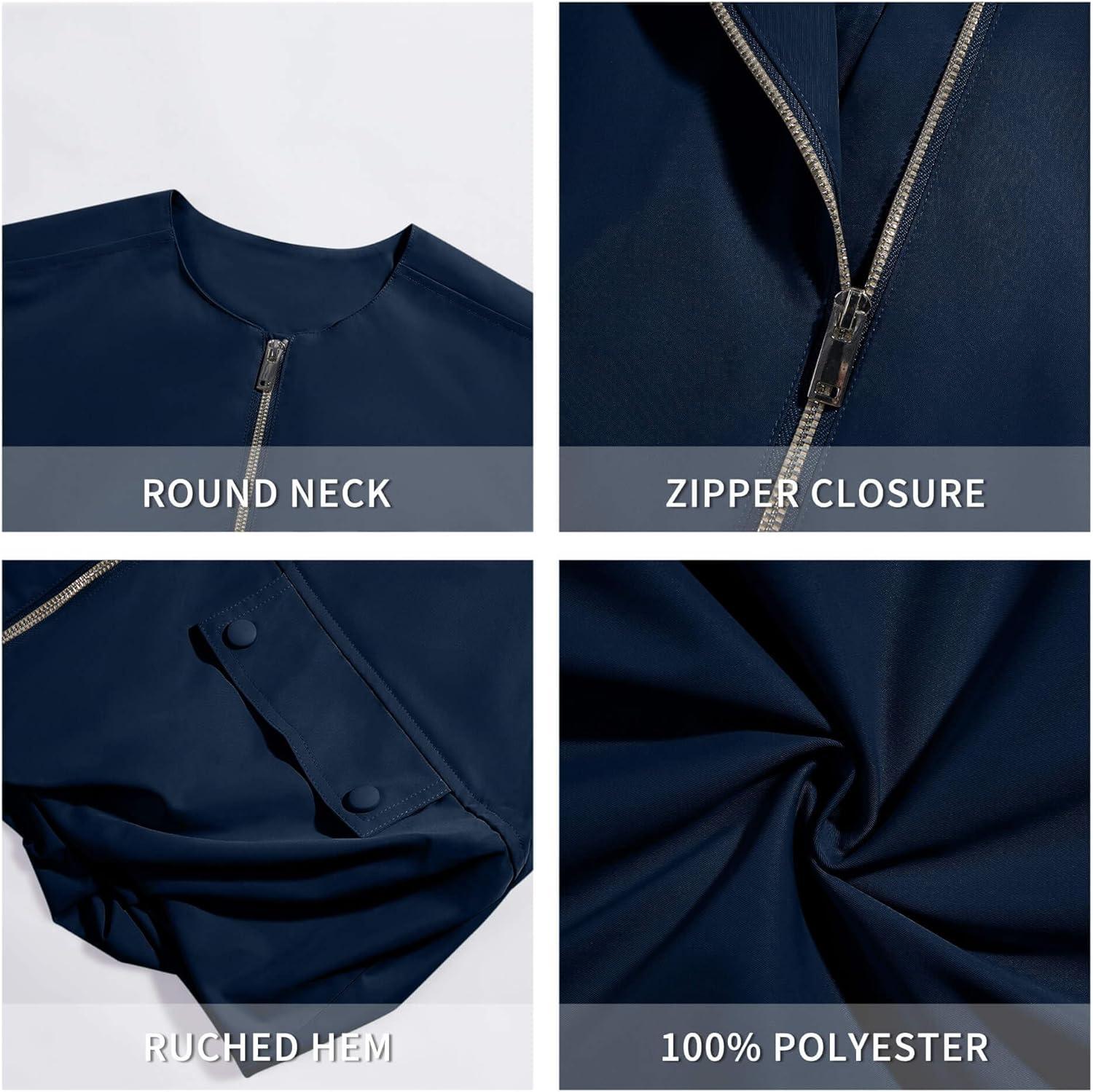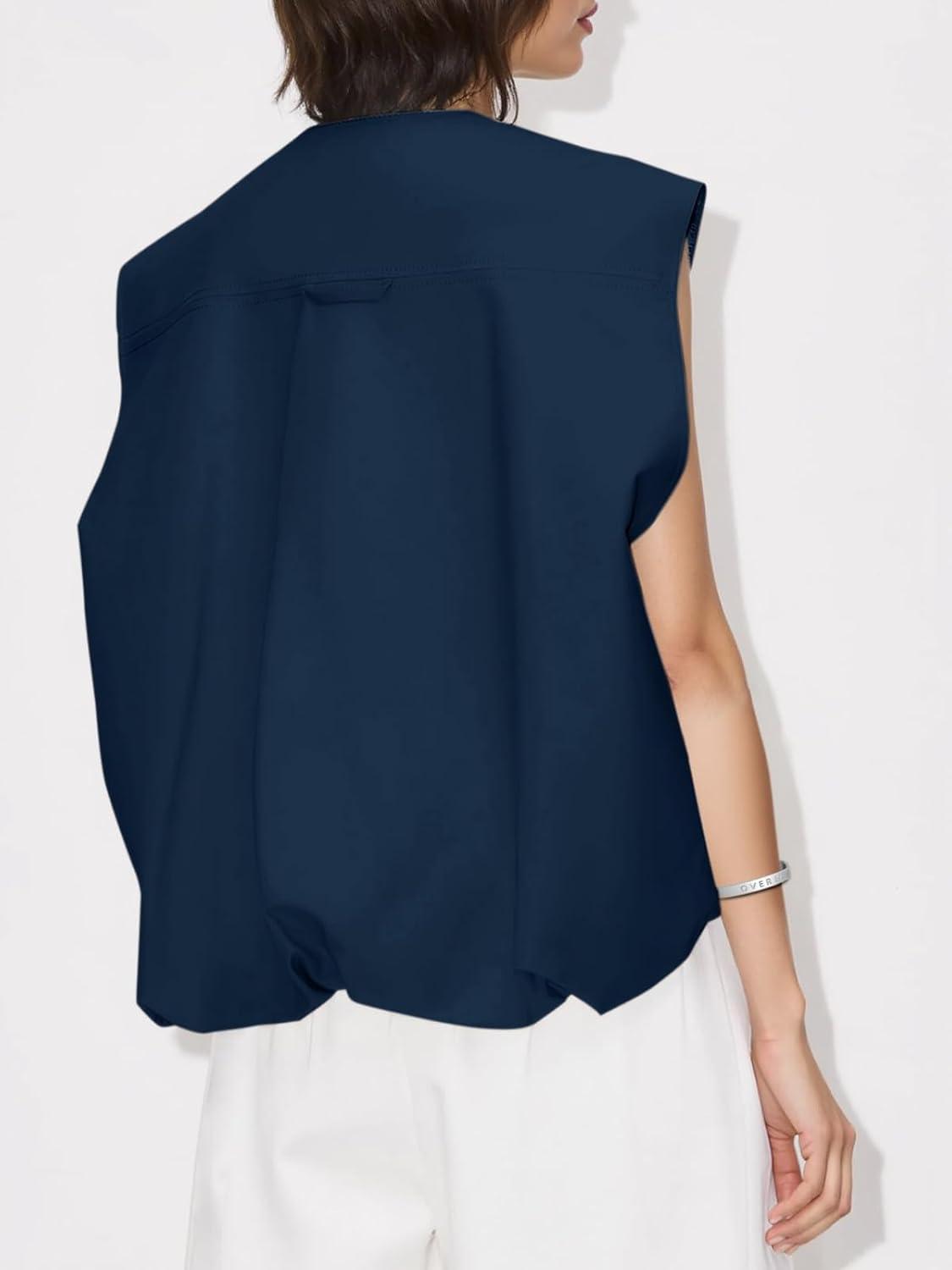 Tankaneo Womens Casual Zip Up Vest Cargo Oversized Ruched Hem Sleeveless Blazer Jackets Tops(Navy)