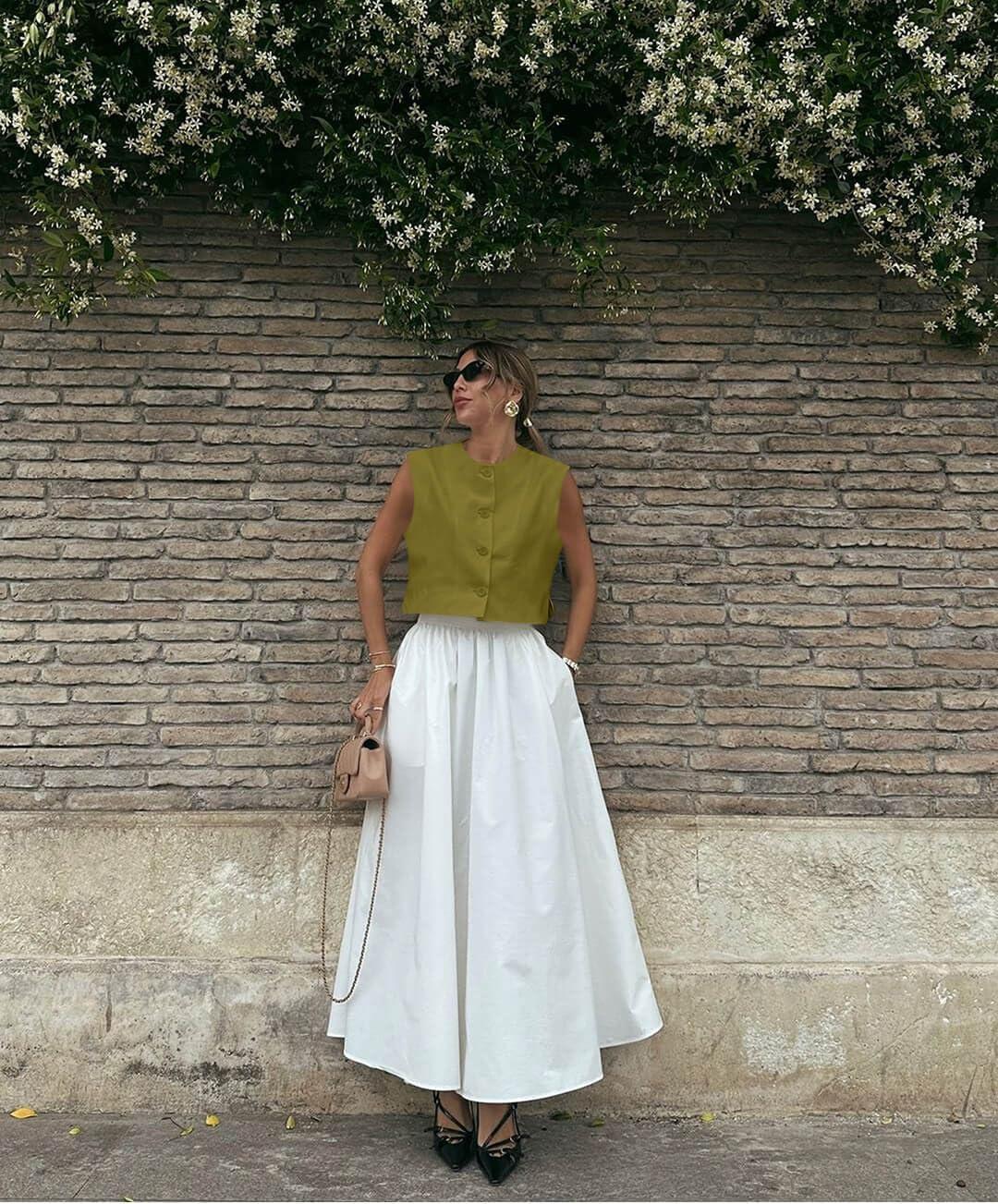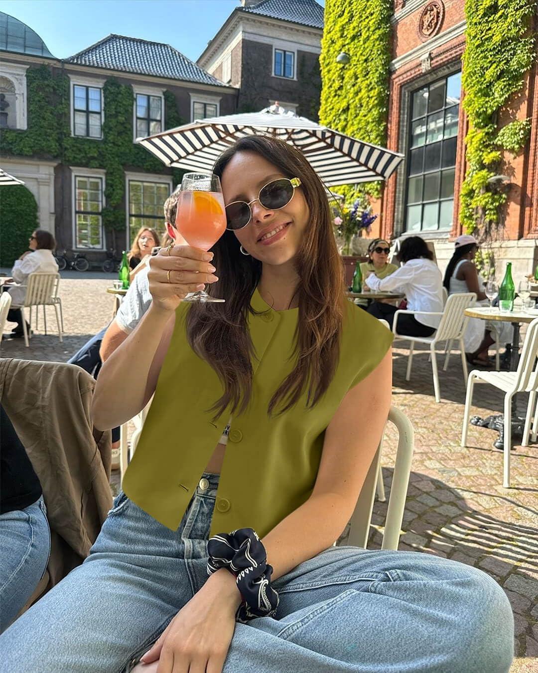 Tankaneo Womens Cropped Cap Sleeve Vest Tank Tops Summer Work Casual Crew Neck Button Down Waistcoats(Army Green)