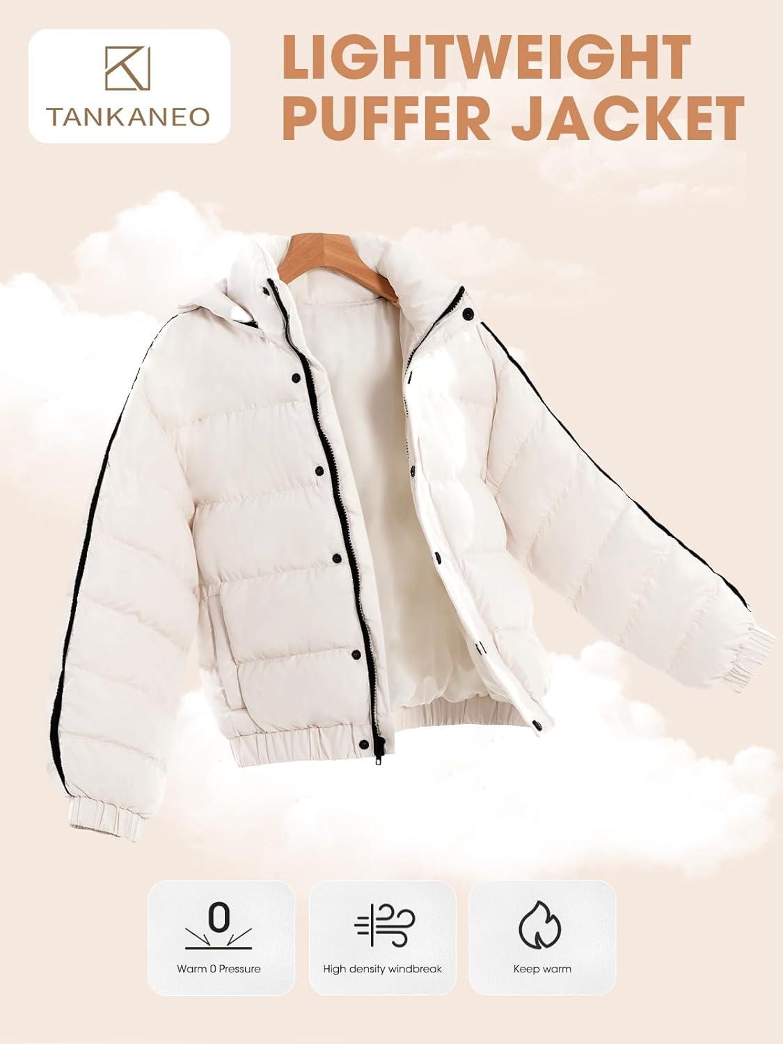 Be the first to review “Tankaneo Womens Cropped Puffer Jacket Hooded Quilted Contrast Trim Short Down Coats Outerwear Winter Outfits(Beige)”