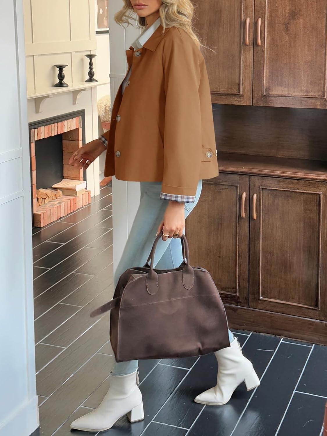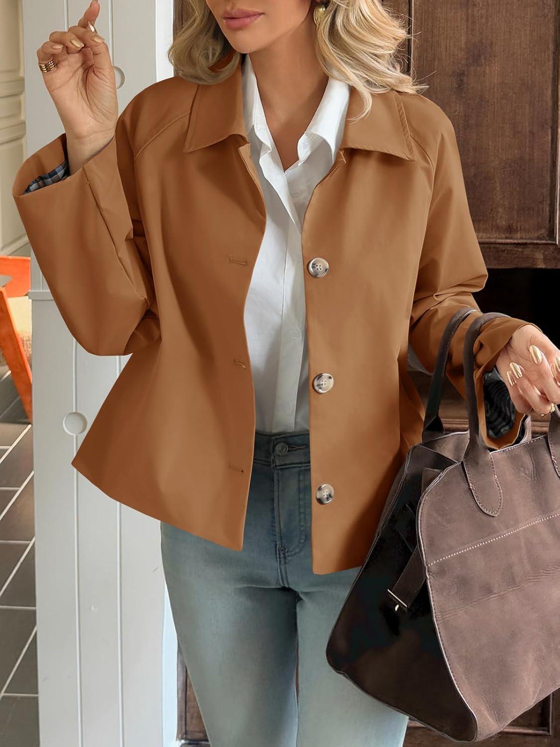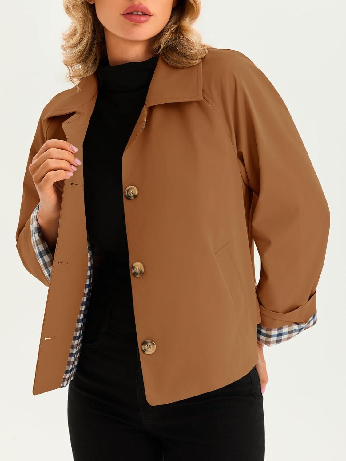 Tankaneo Womens Cropped Trench Coat Lightweight Single Breasted Jacket Fall Windbreaker Fashion Outerwear(Caramel)