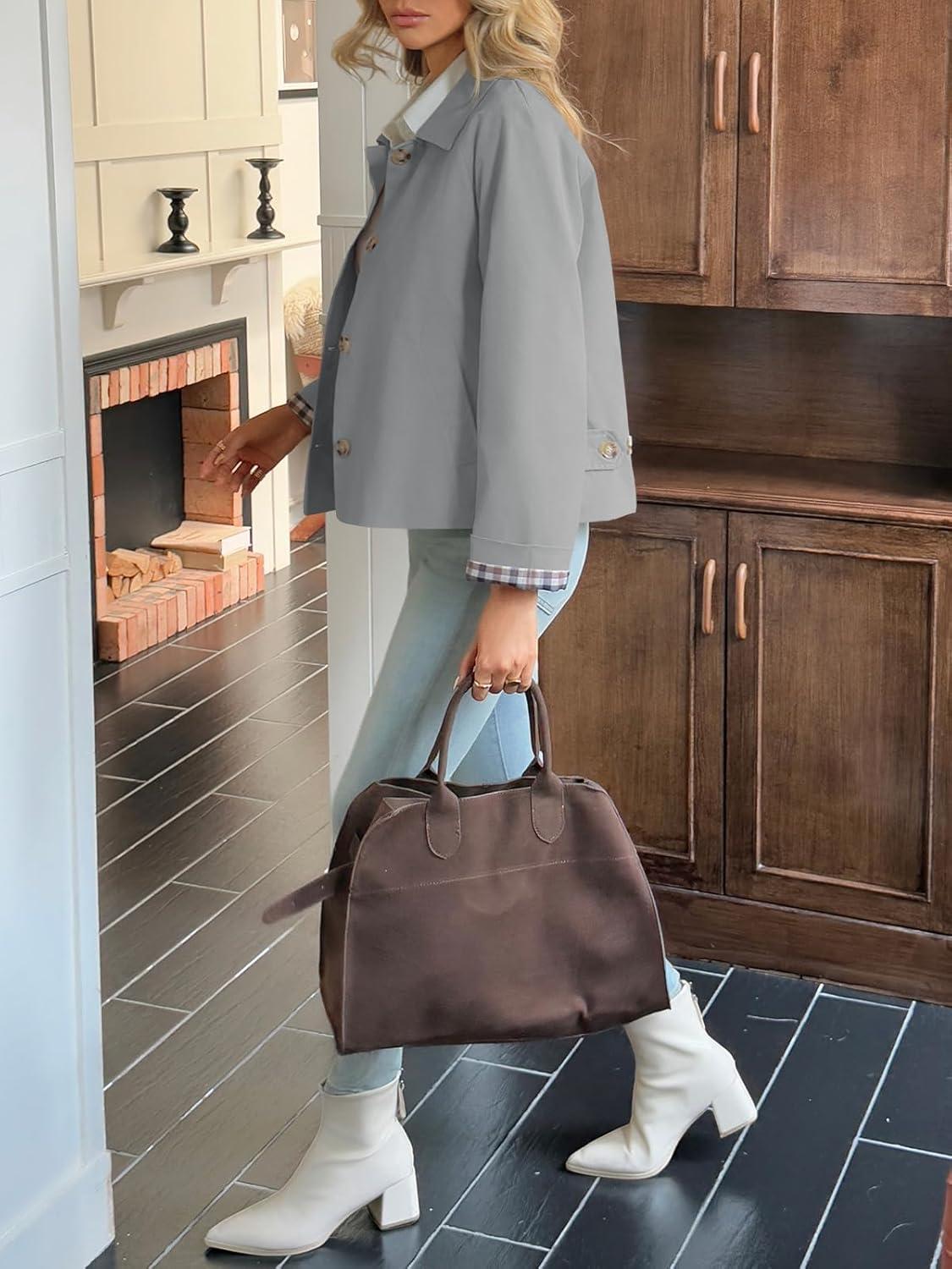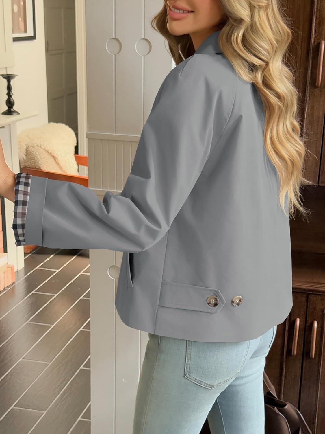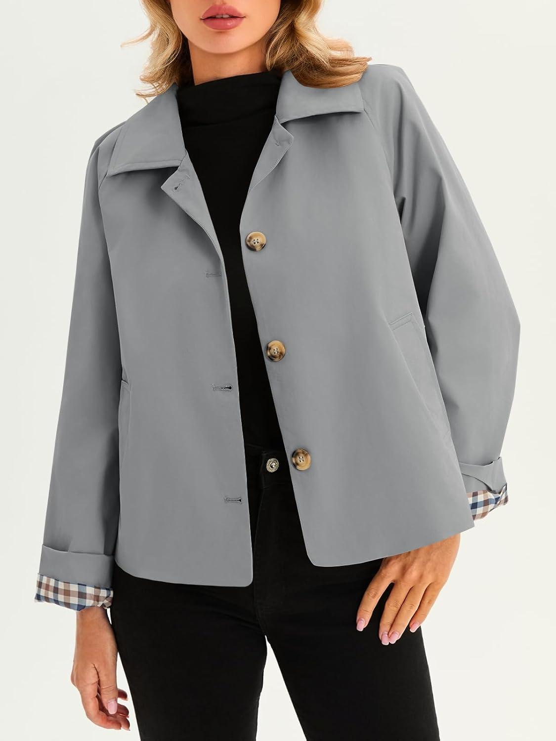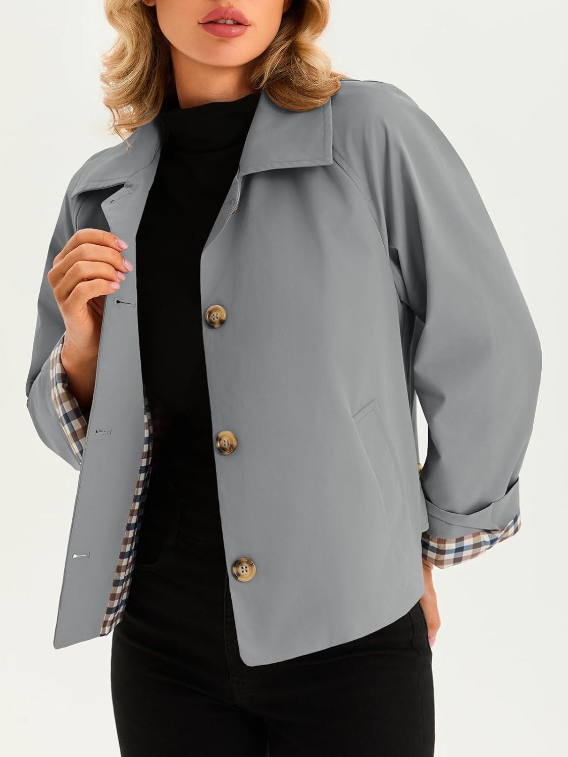 Tankaneo Womens Cropped Trench Coat Lightweight Single Breasted Jacket Fall Windbreaker Fashion Outerwear(Grey)