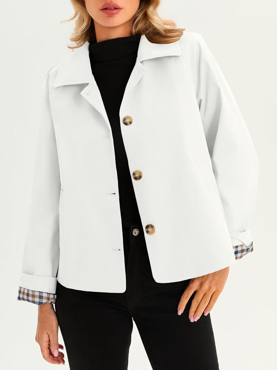 Tankaneo Womens Cropped Trench Coat Lightweight Single Breasted Jacket Fall Windbreaker Fashion Outerwear(White)