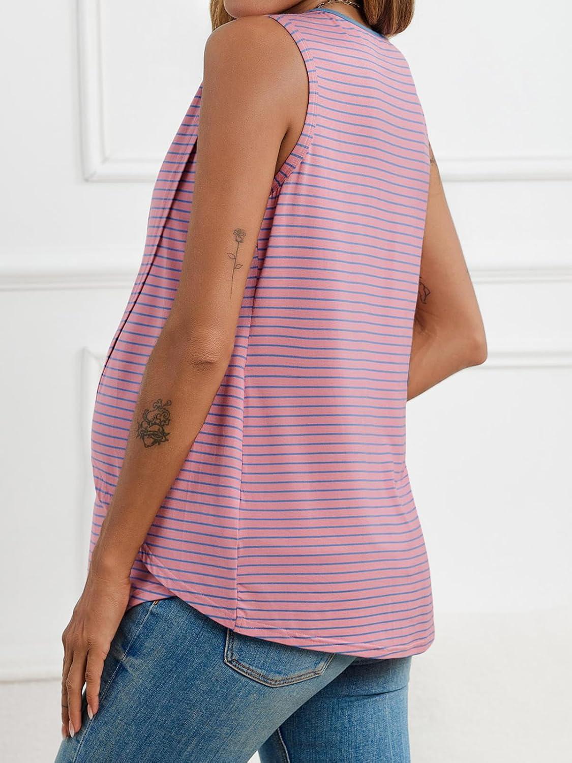 Tankaneo Womens Cross Front Maternity Tank Tops Breastfeeding Round Neck Striped Sleeveless Shirts Summer Pregnancy Clothes(Pink)