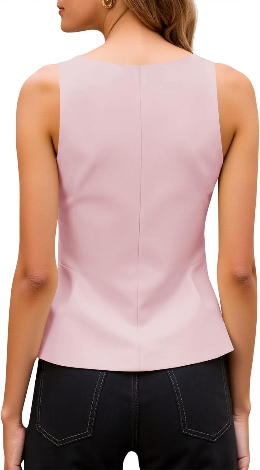 Tankaneo Womens Deep V Neck Suit Vest Peplum Summer Trendy Sleeveless Fitted Blazer Tank Tops Business Casual Blouses(Light Pink)
