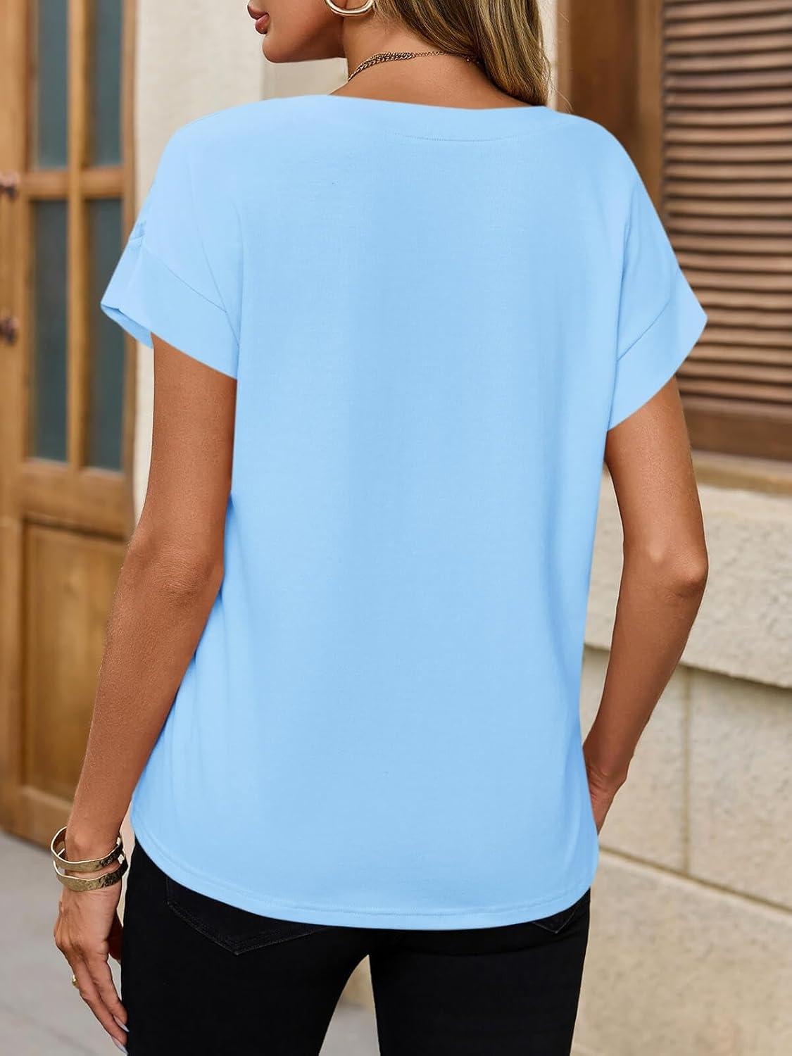 Tankaneo Womens Deep V Neck T-Shirts Summer Casual Cap Sleeve Tank Tops Loose Fit Tees(Blue)