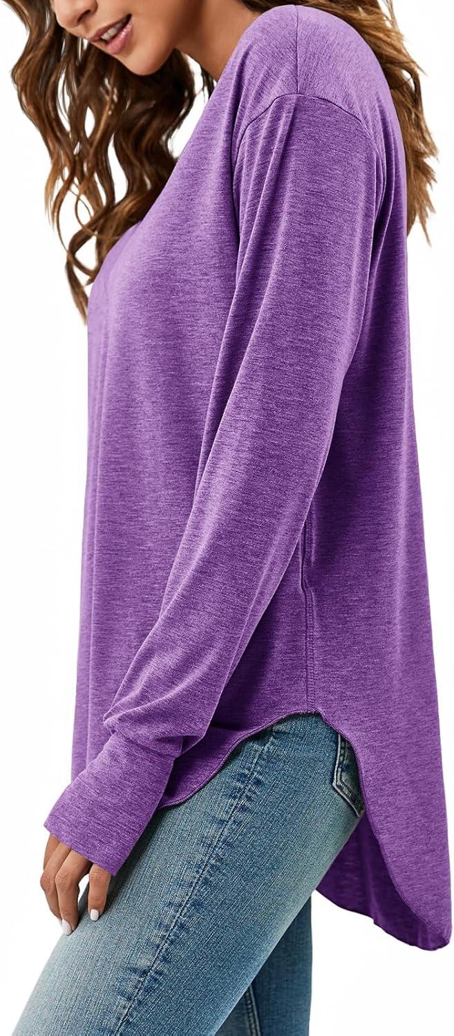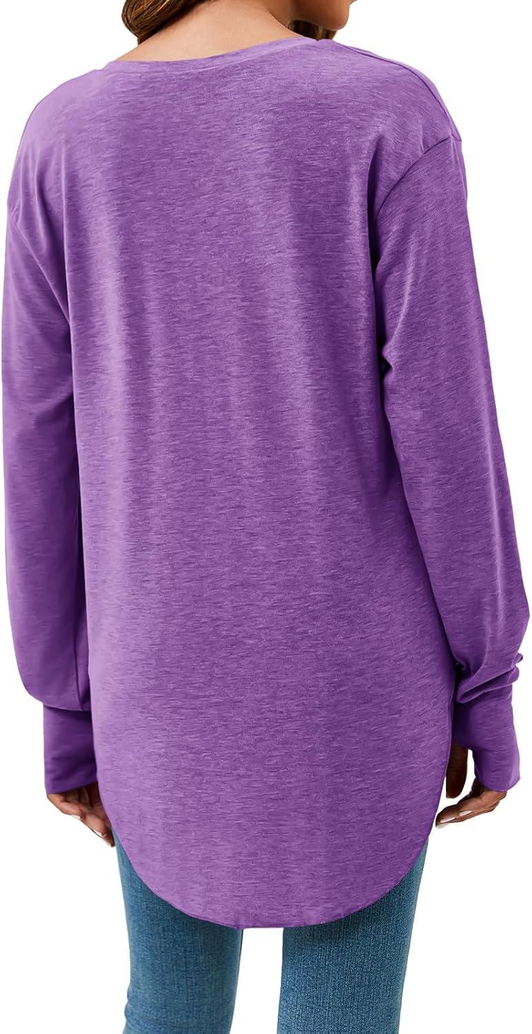 Tankaneo Womens Deep V Neck Tunic Tops Long Sleeve Oversized Casual Loose Fit Curved Hem T Shirts(Purple)