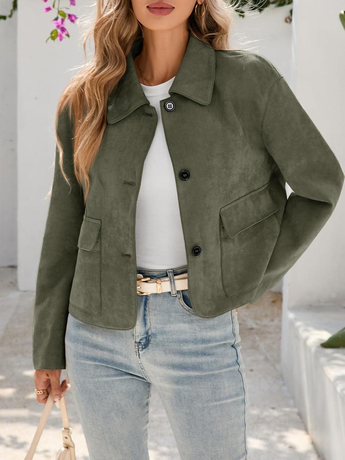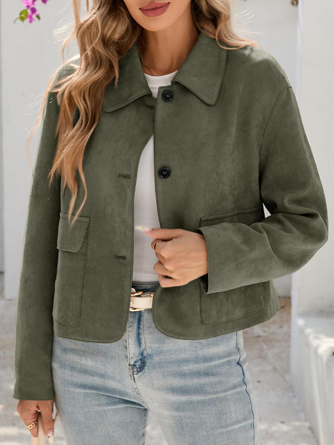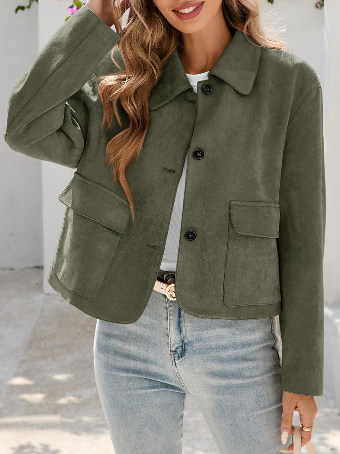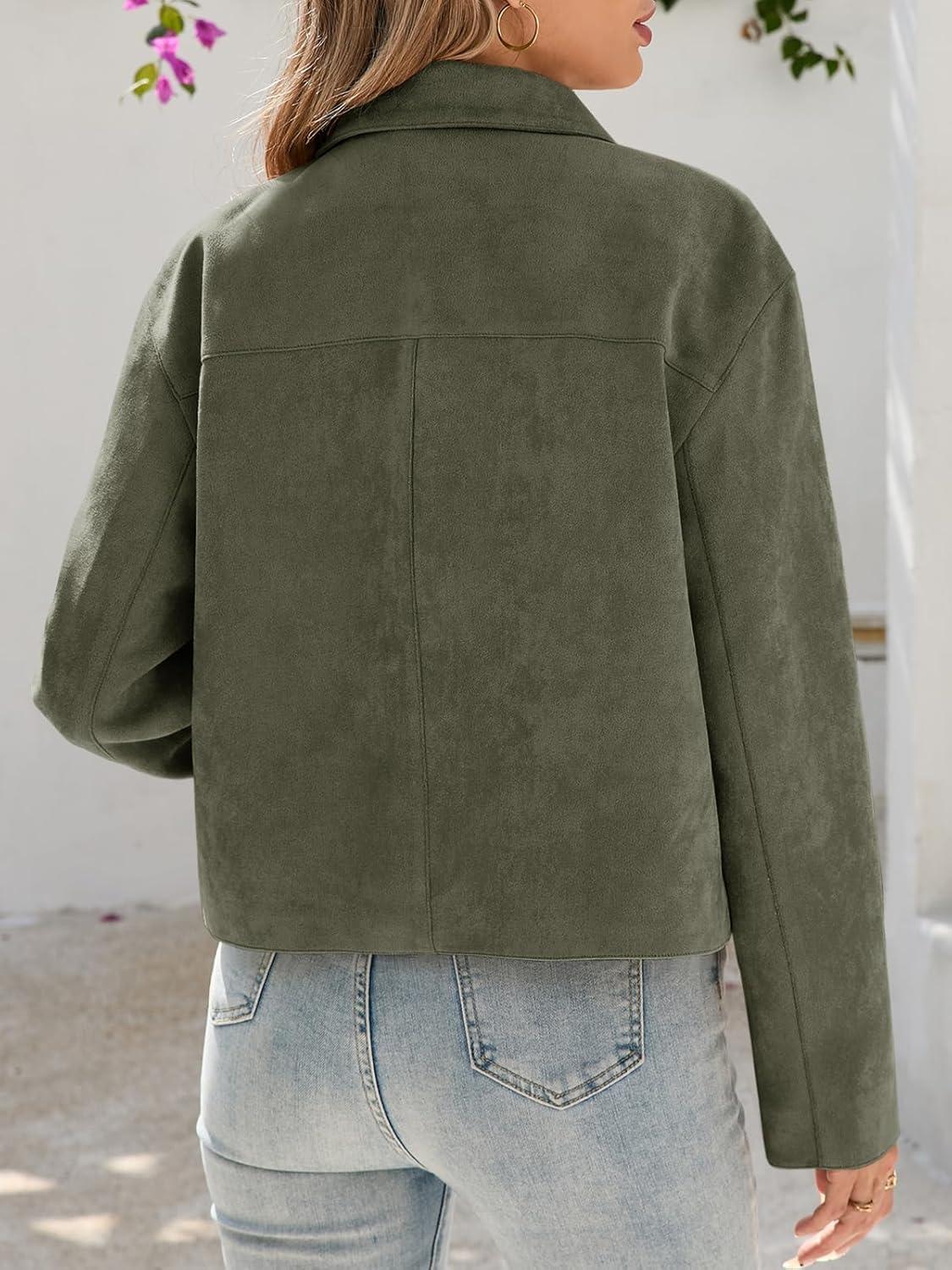 Tankaneo Womens Faux Suede Leather Jackets Casual Cropped Coats Vintage Button Down Shackets(Army Green)