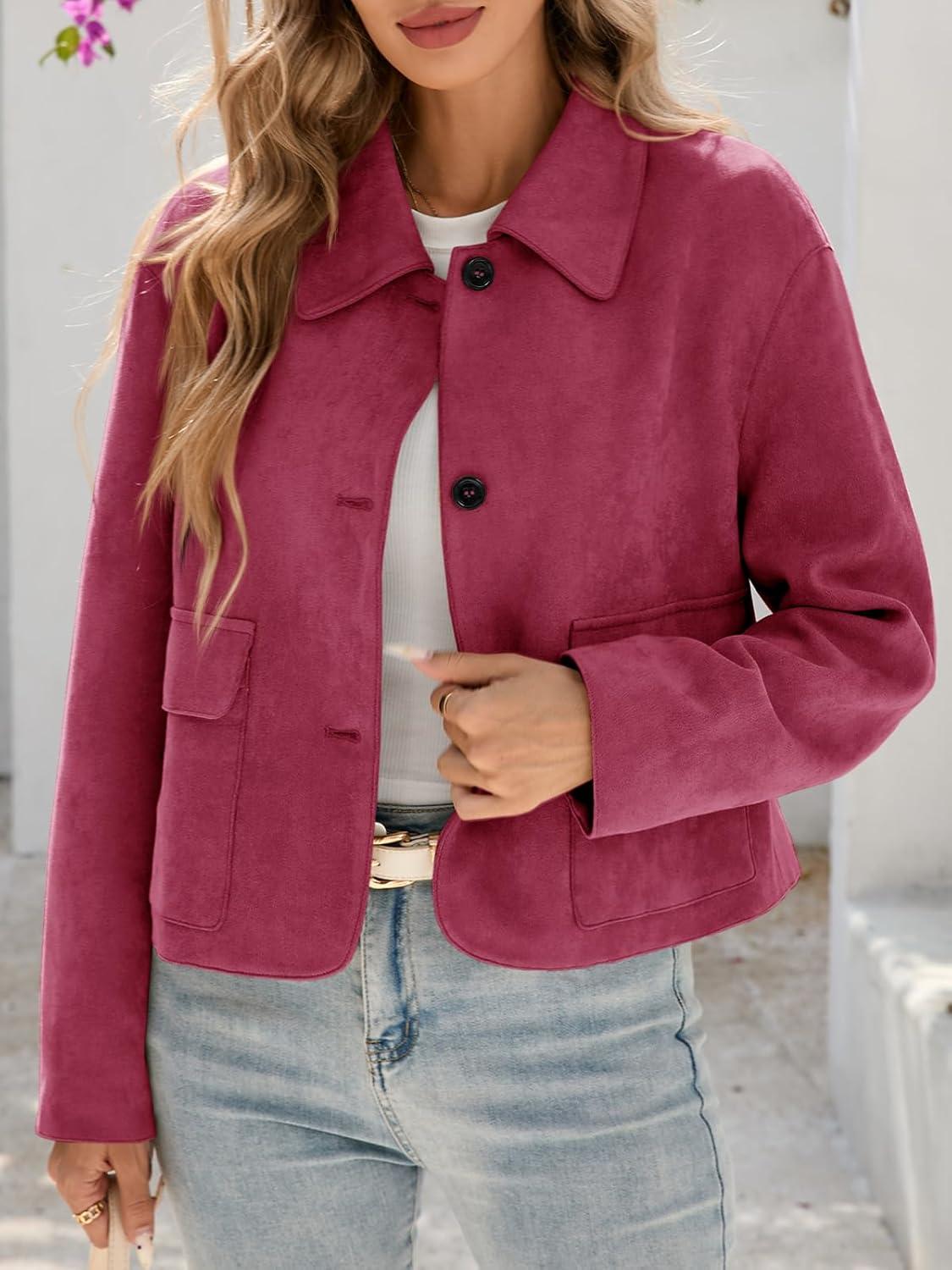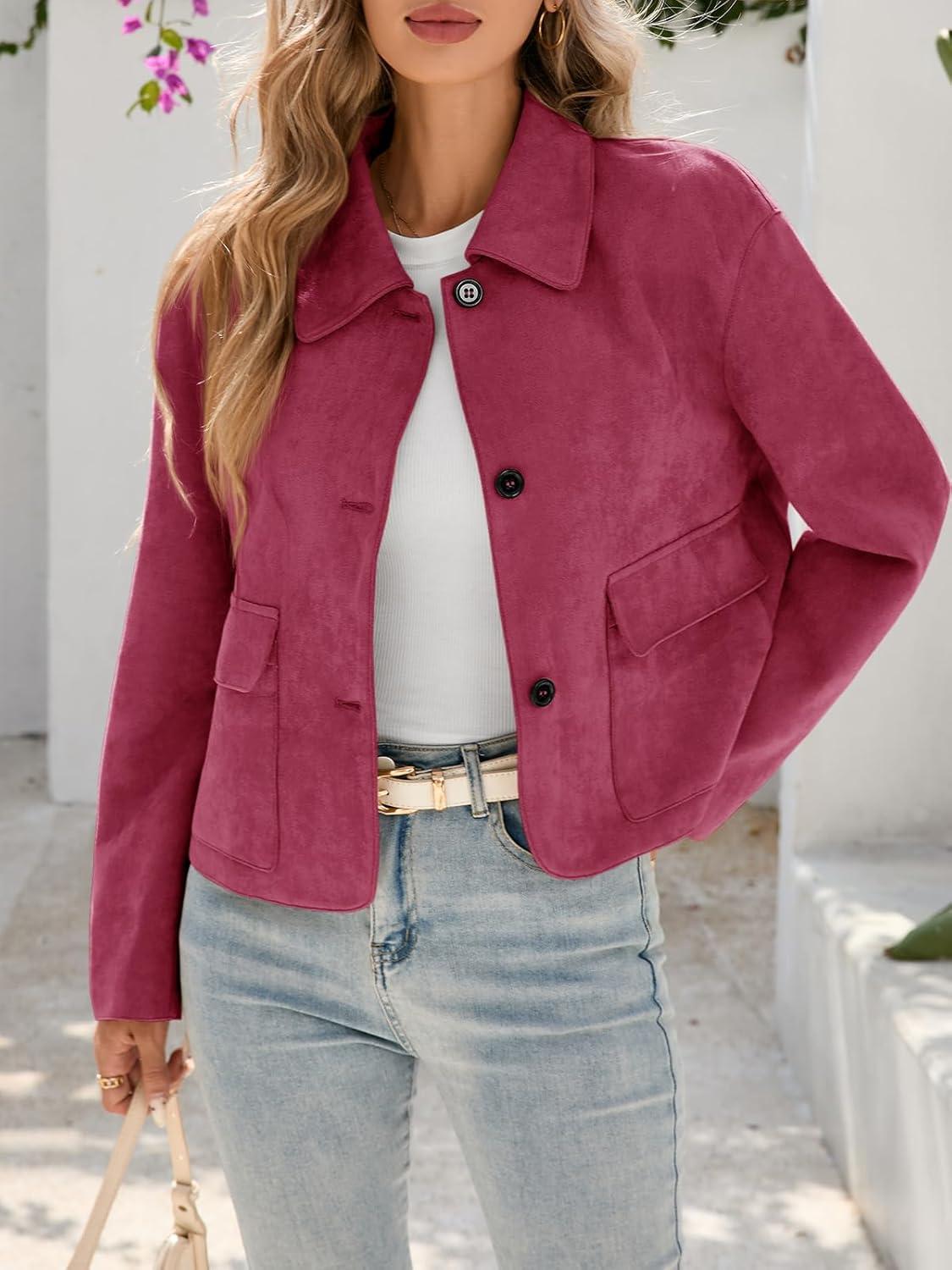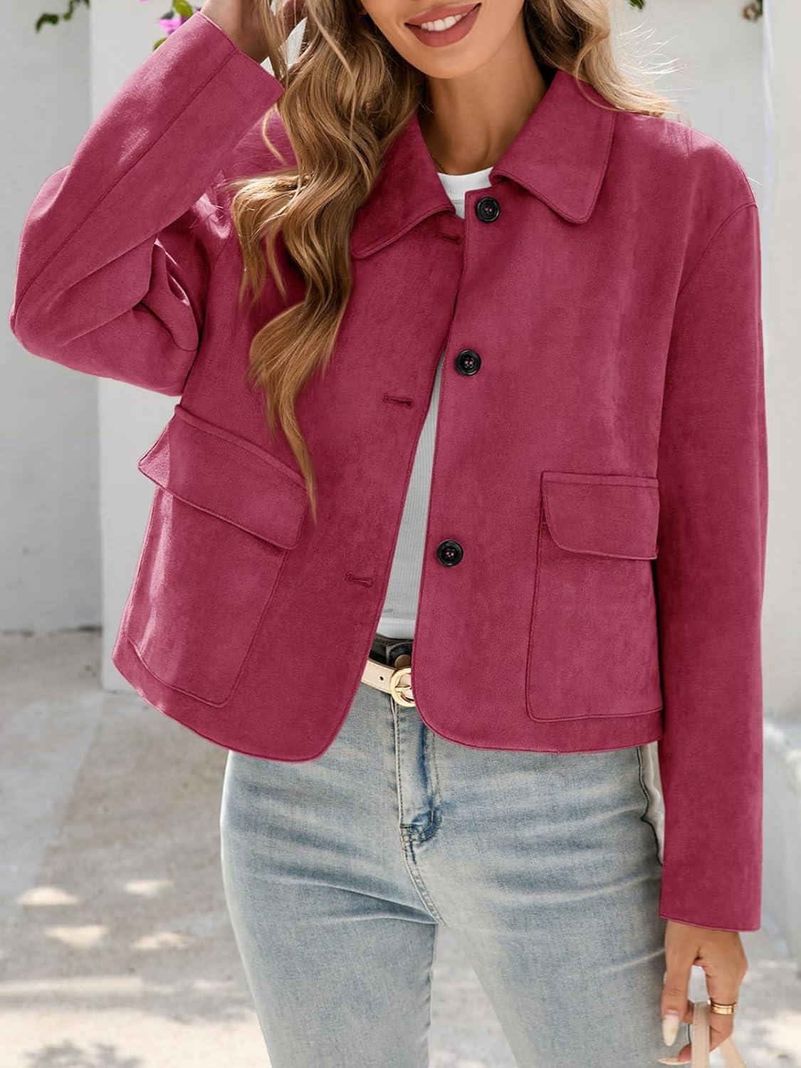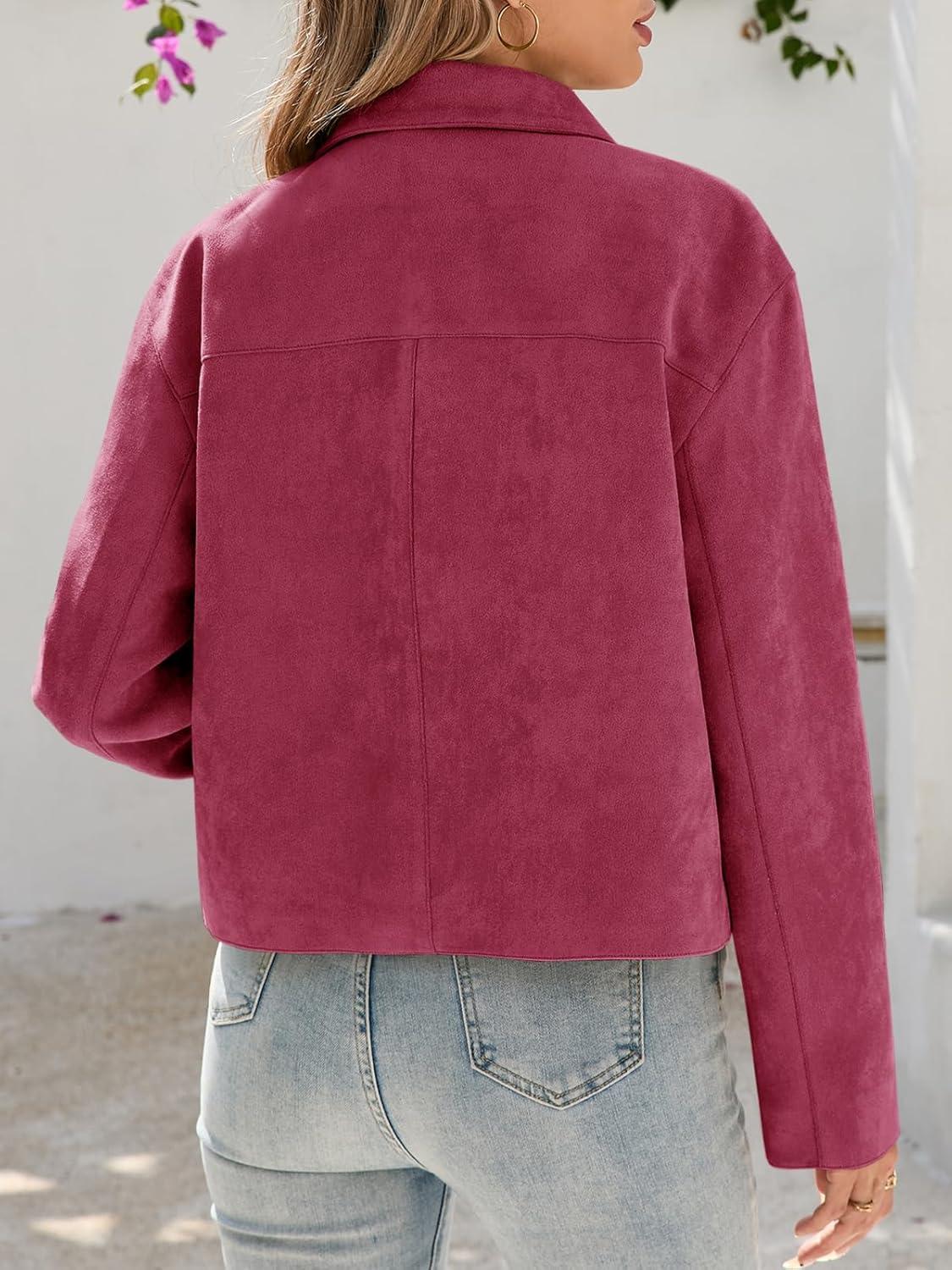 Tankaneo Womens Faux Suede Leather Jackets Casual Cropped Coats Vintage Button Down Shackets(Wine Red)