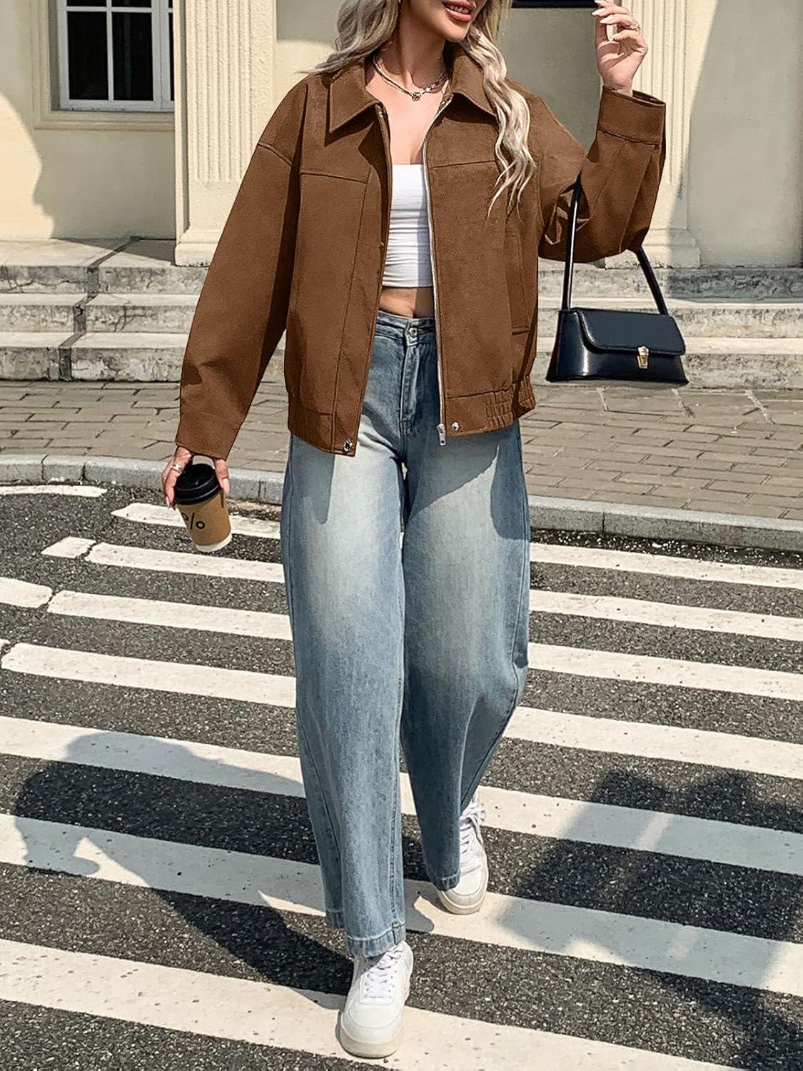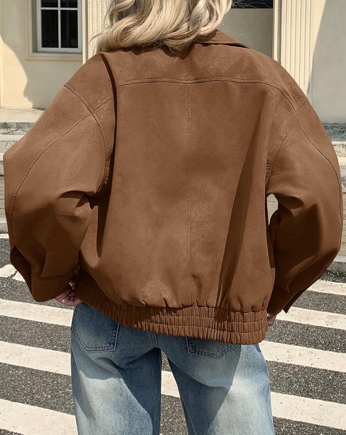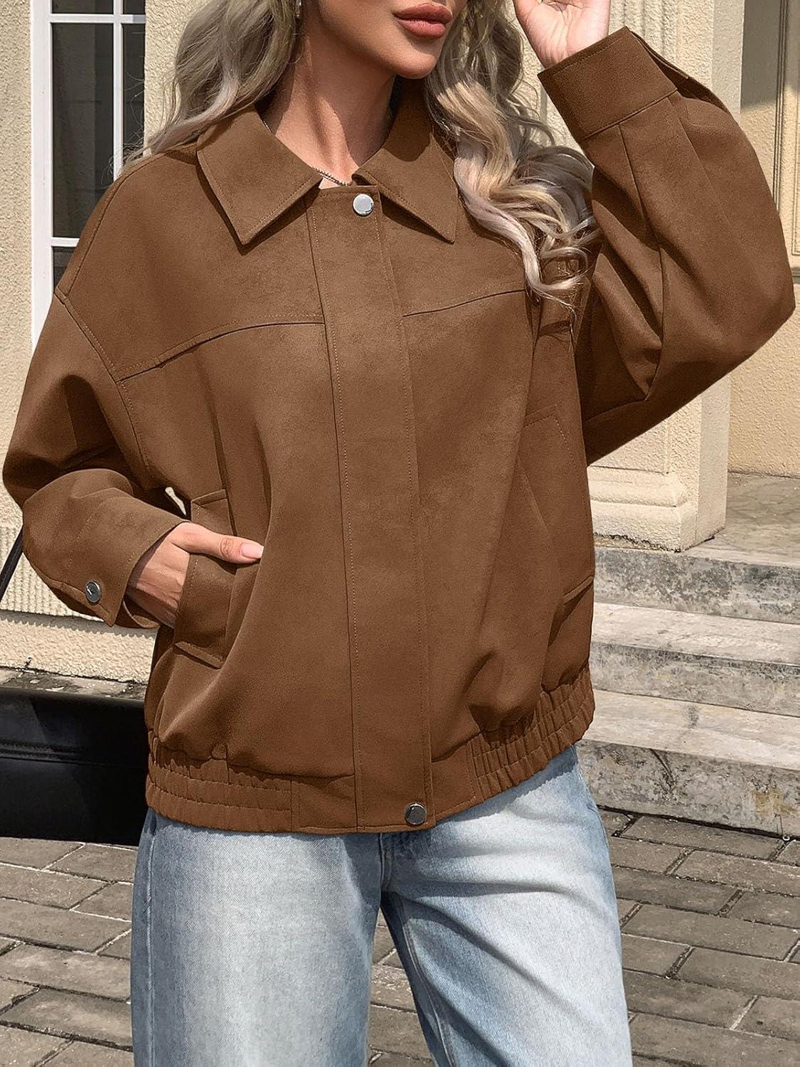 Tankaneo Women’s Faux Suede Motorcycle Jackets Oversized Zip Up Bomber Coats Fall Fashion Winter Outerwear(Coffee)