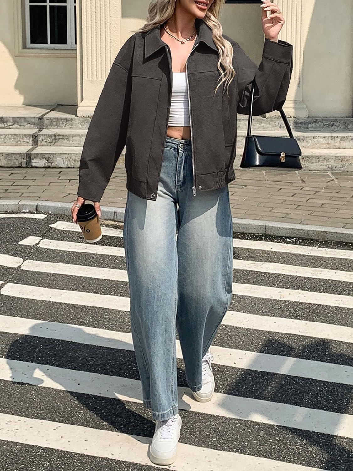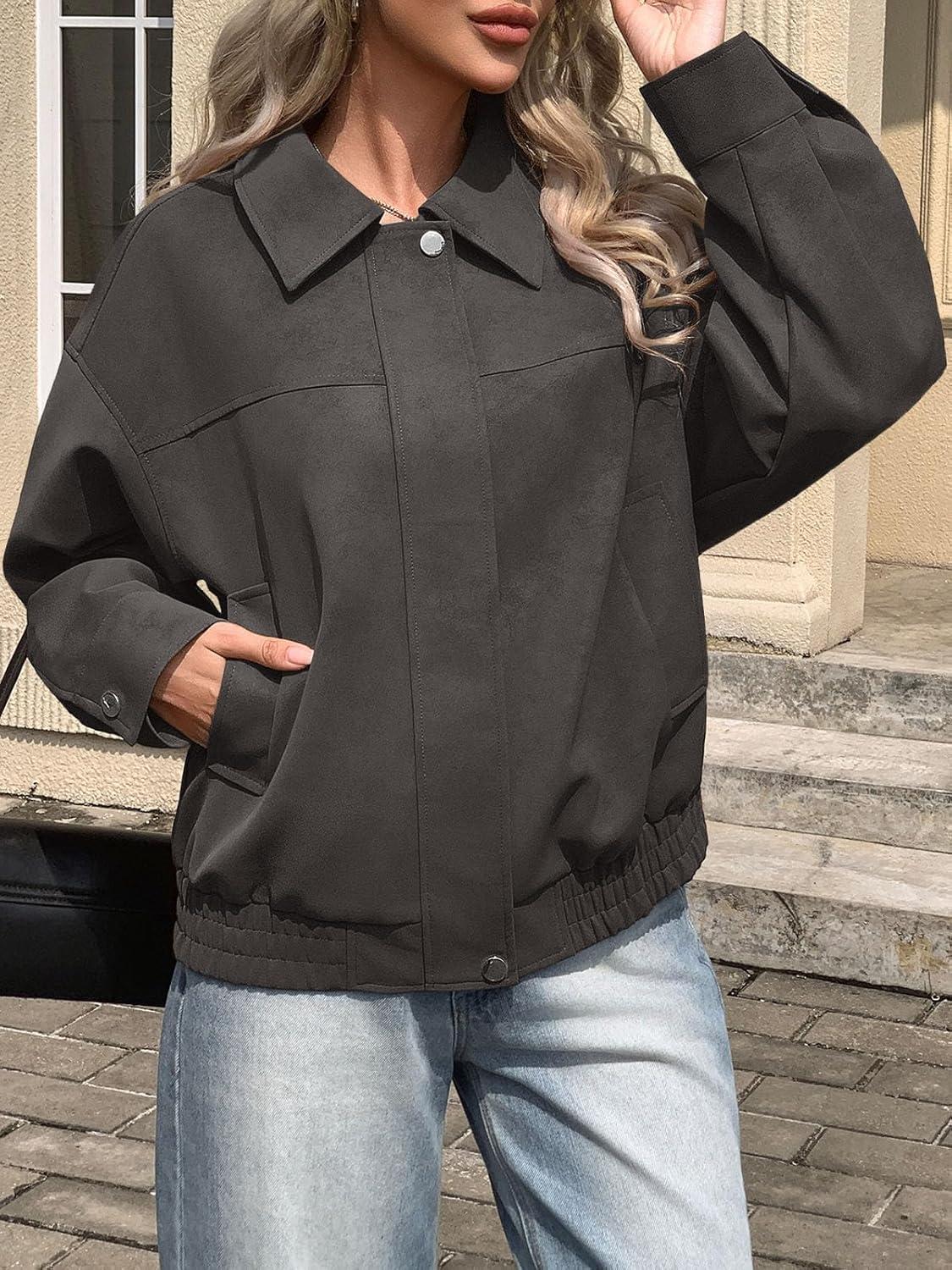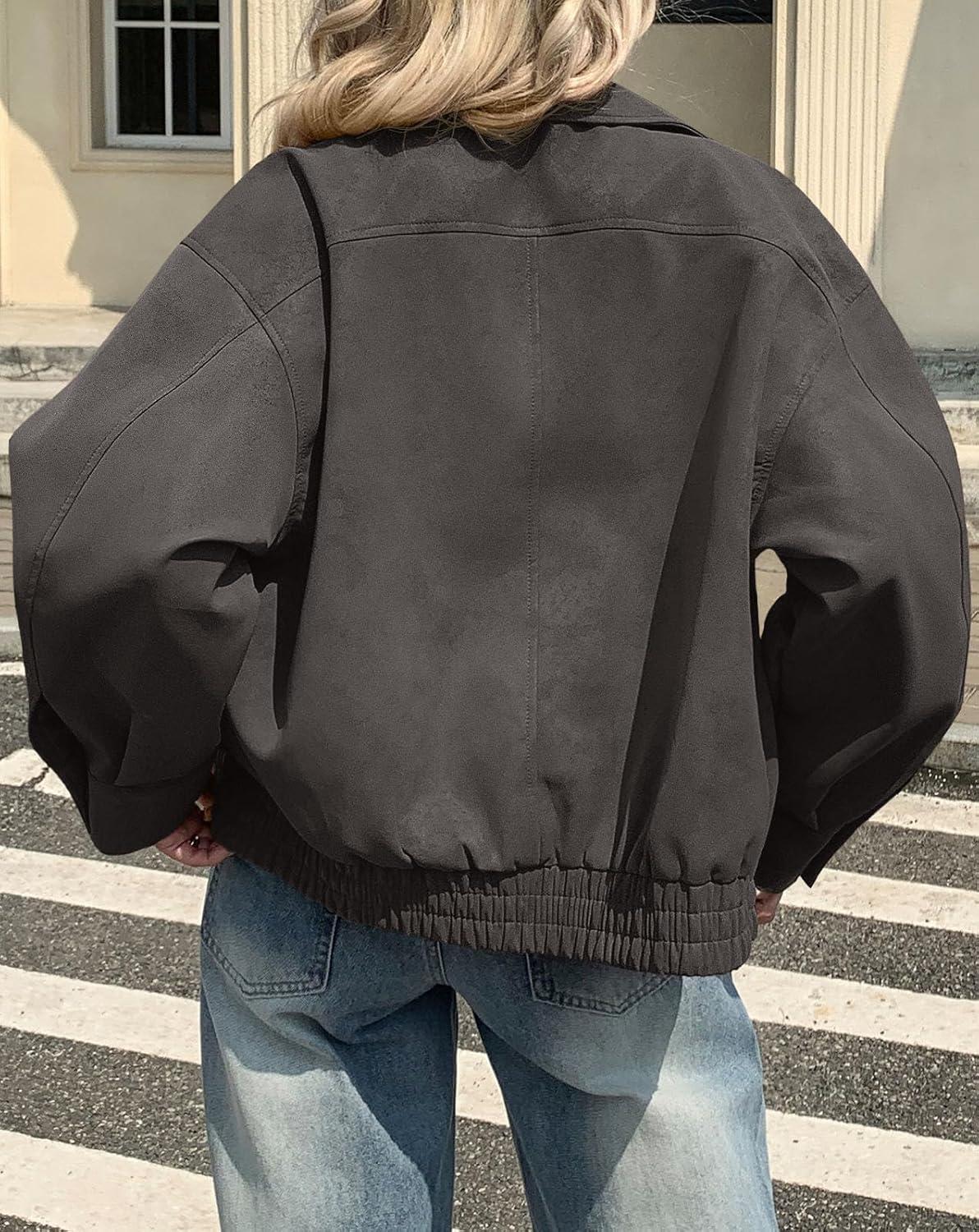 Tankaneo Women’s Faux Suede Motorcycle Jackets Oversized Zip Up Bomber Coats Fall Fashion Winter Outerwear(Dark Grey)