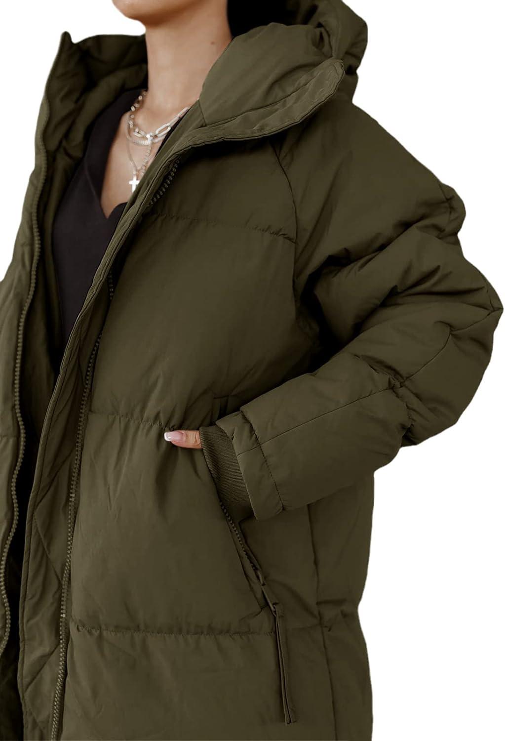 Tankaneo Womens Hooded Long Quilted Coat Maxi Length Long Sleeve Puffer Jacket Warm Padded Coat Thick Winter Outerwear(Army Green)