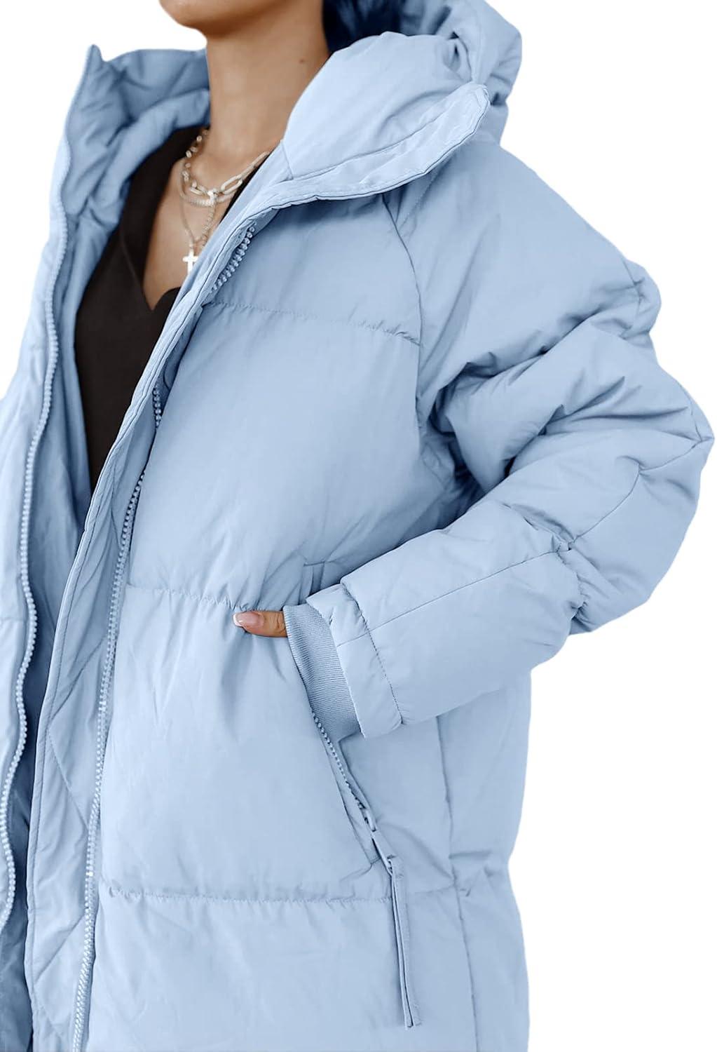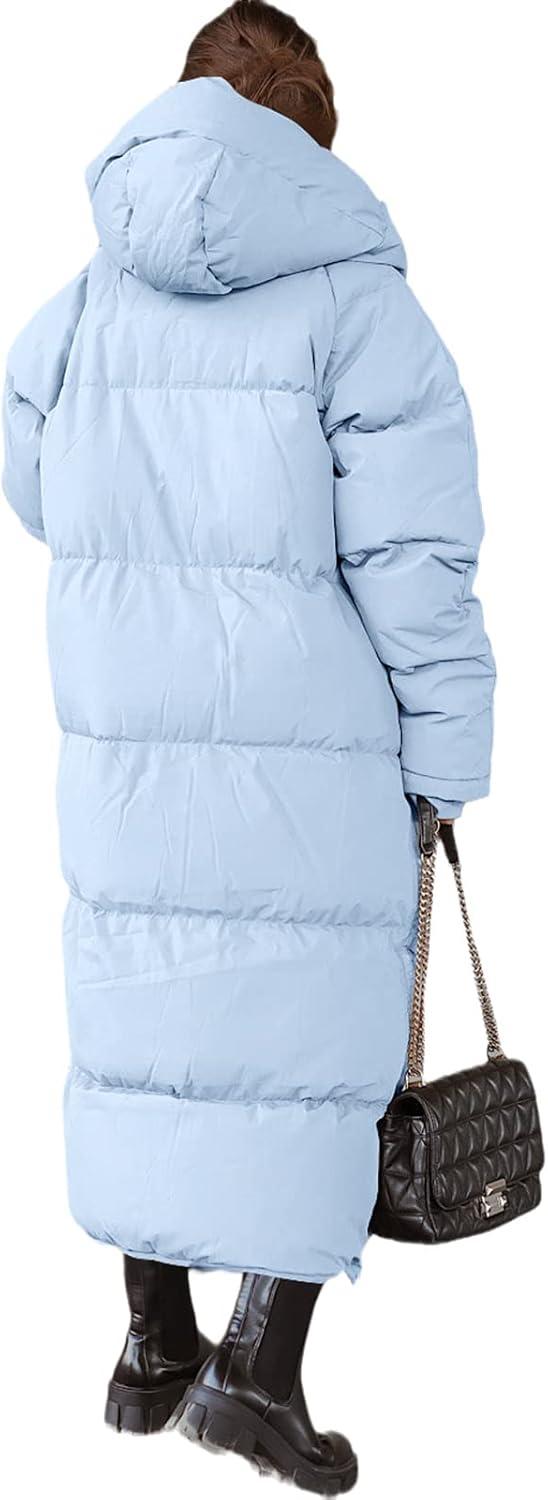 Tankaneo Womens Hooded Long Quilted Coat Maxi Length Long Sleeve Puffer Jacket Warm Padded Coat Thick Winter Outerwear(Blue)