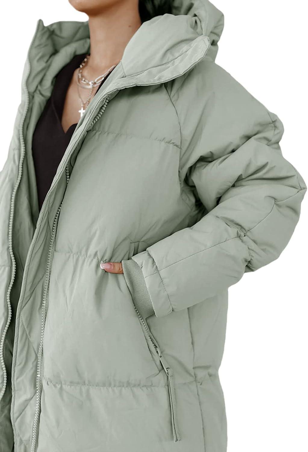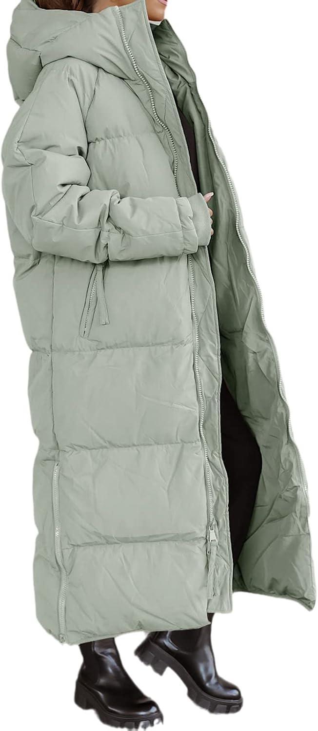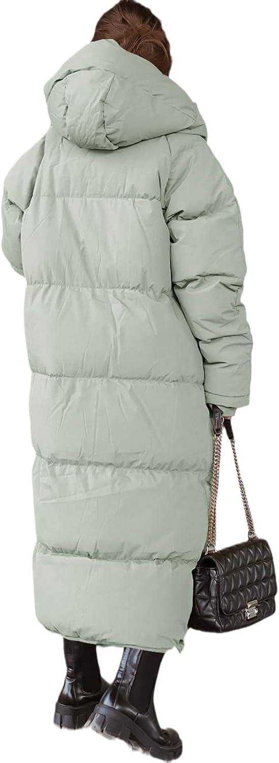 Tankaneo Womens Hooded Long Quilted Coat Maxi Length Long Sleeve Puffer Jacket Warm Padded Coat Thick Winter Outerwear(Light Green)
