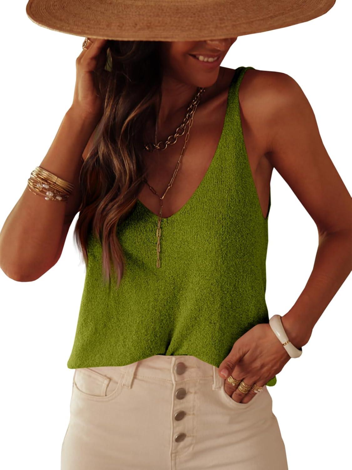 Tankaneo Womens Knit Sweater Tank Tops Casual Summer V Neck Loose Fit Sleeveless Camisole Shirts(Army Green)
