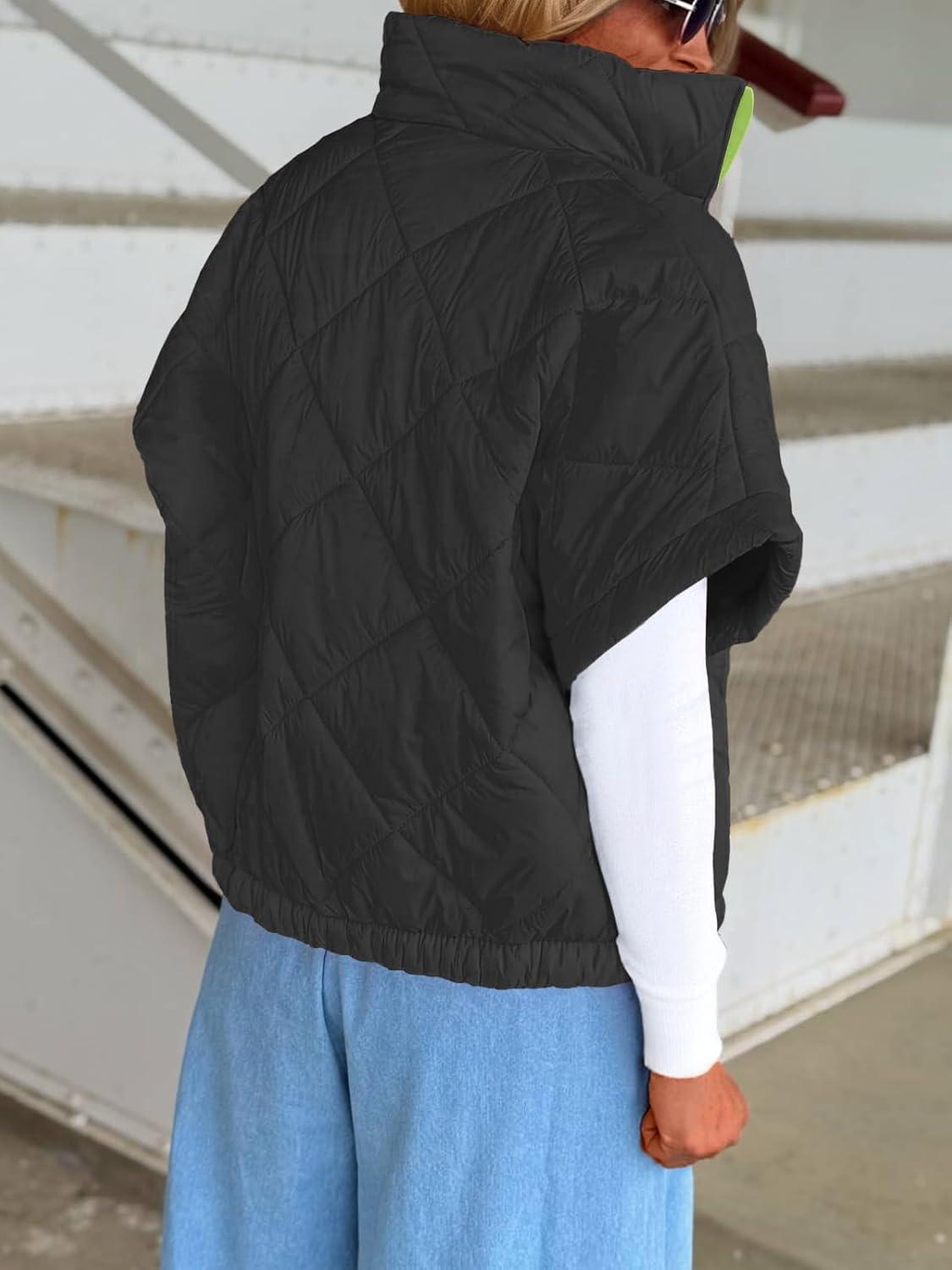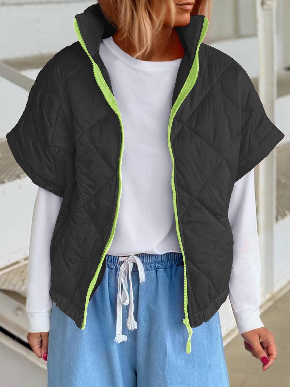 Tankaneo Womens Lightweight Puffer Vests Sleeveless Quilted Jackets Short Sleeve Zip Up Vest Oversized Warm Outerwear(Black)