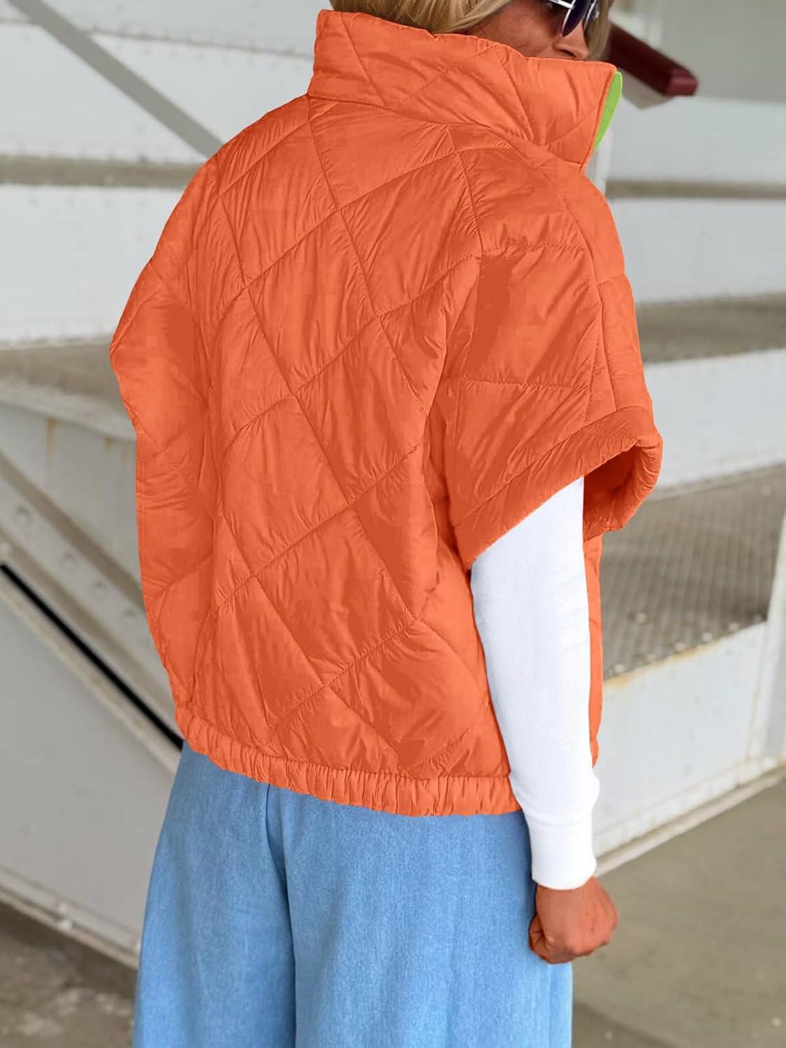Tankaneo Womens Lightweight Puffer Vests Sleeveless Quilted Jackets Short Sleeve Zip Up Vest Oversized Warm Outerwear(Orange)