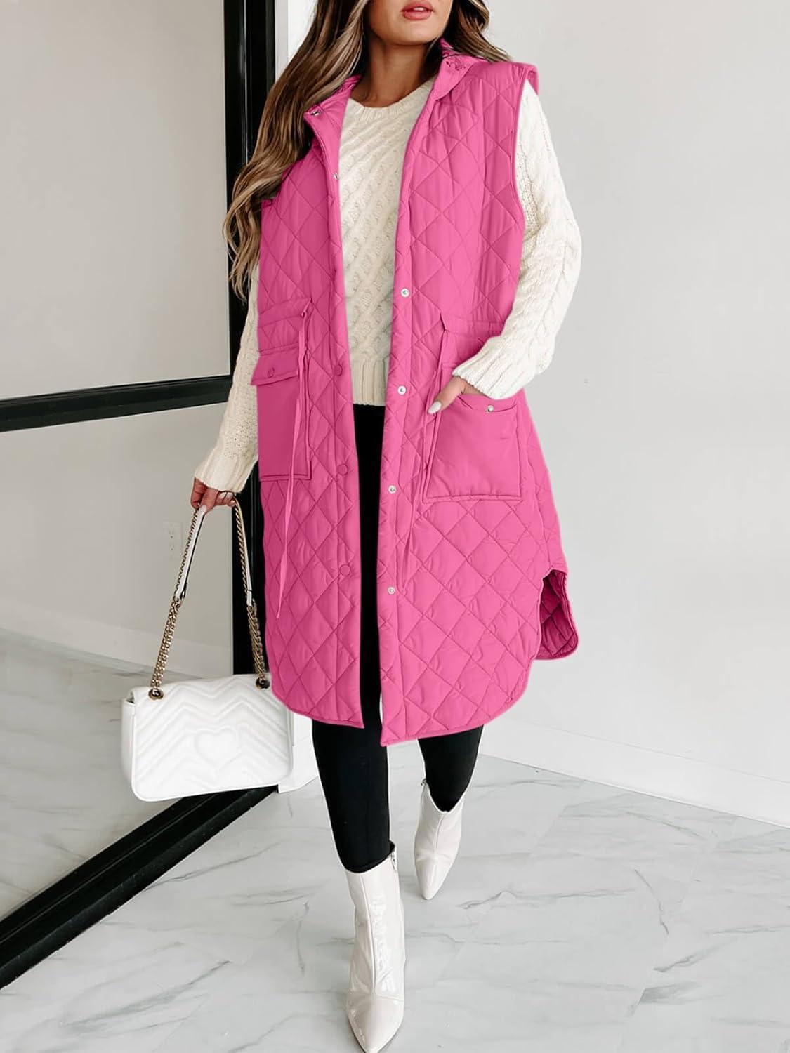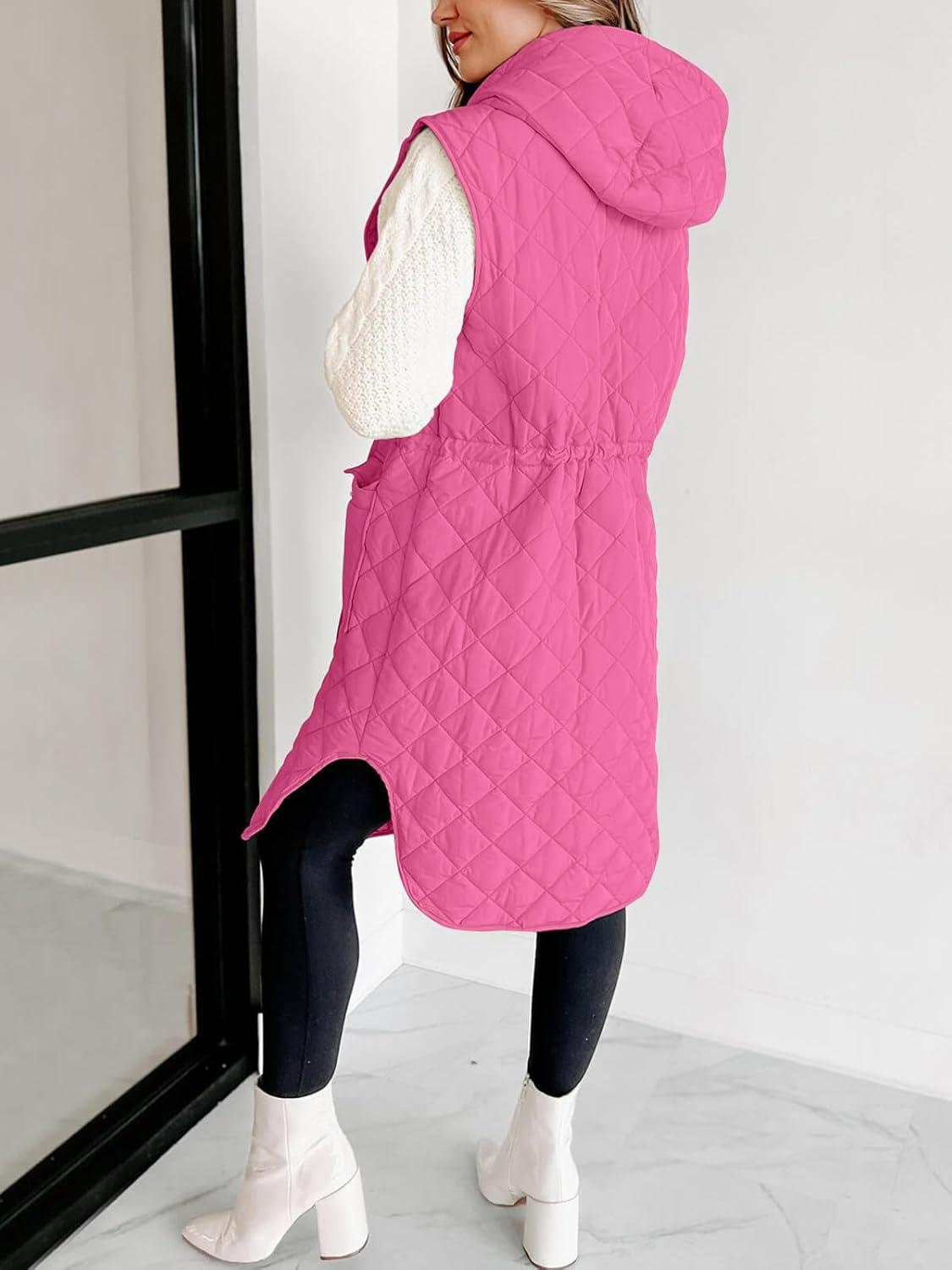 Tankaneo Women’s Long Puffer Vest Sleeveless Hood Quilted Winter Outwear Warm Jackets Coats(Rose Red)
