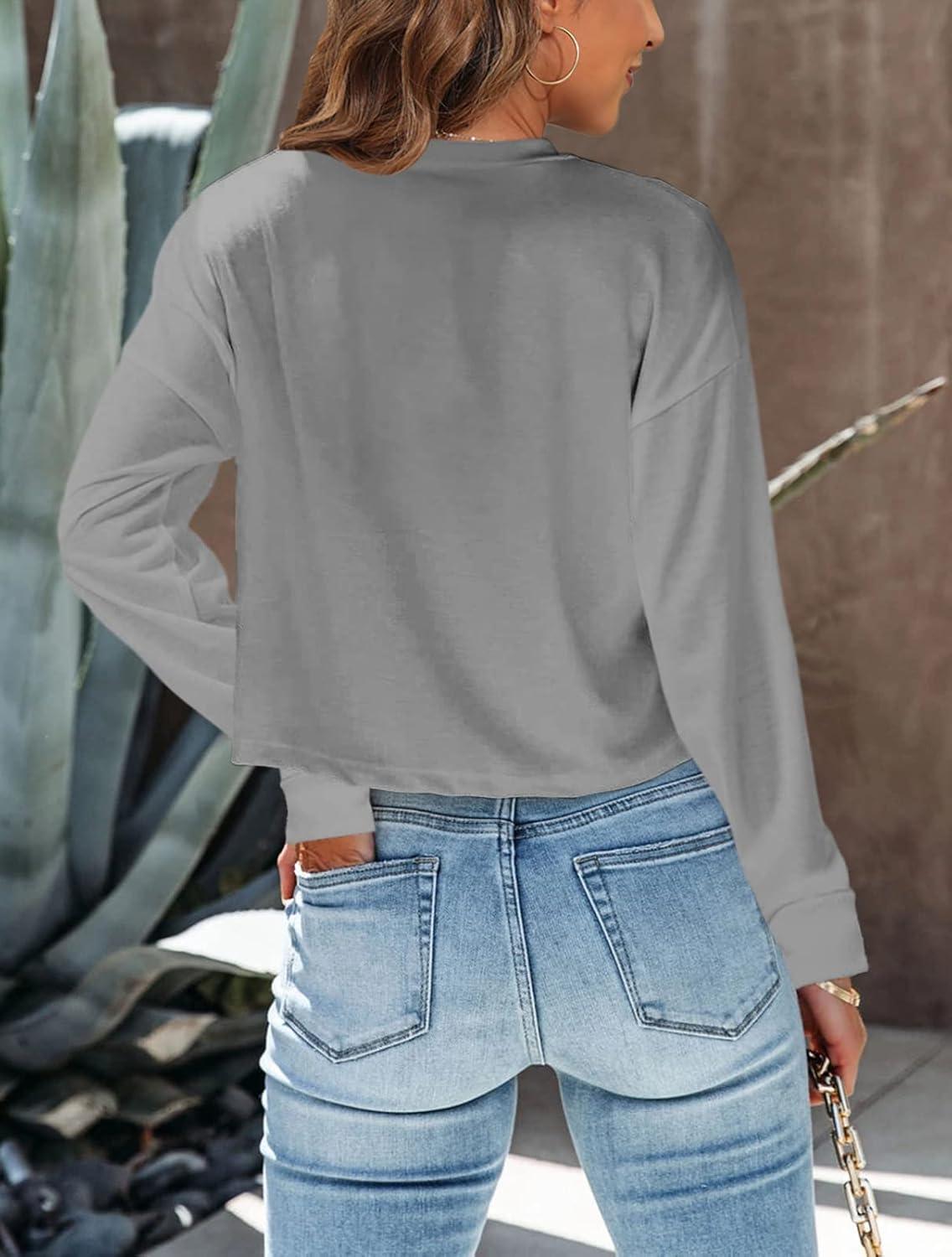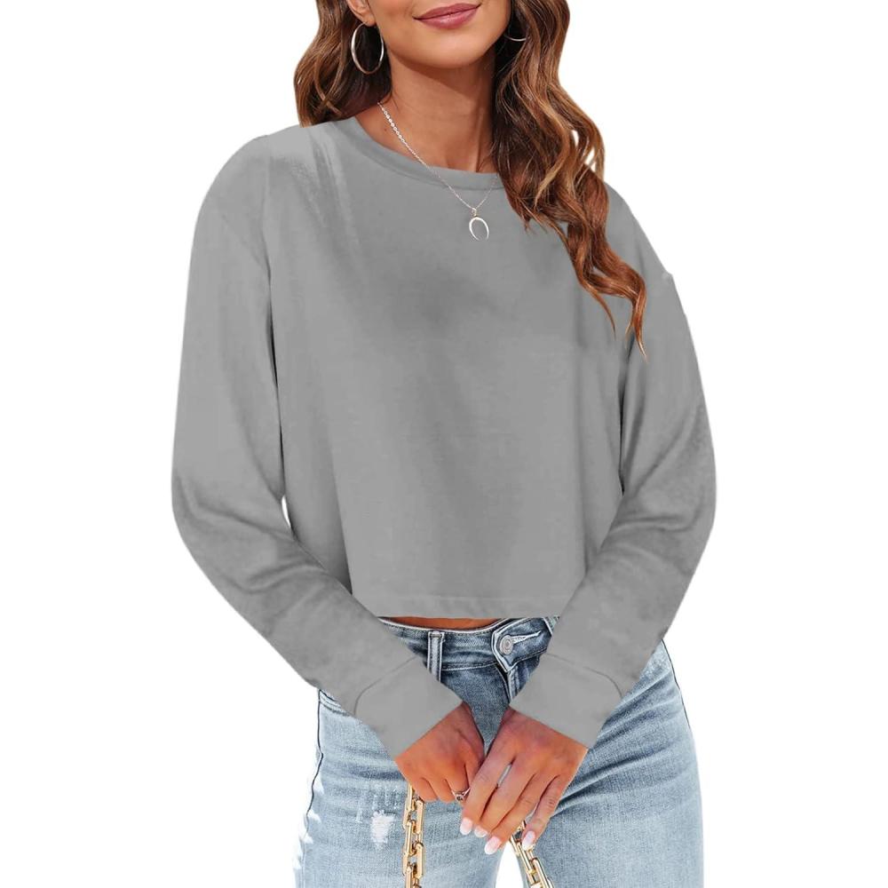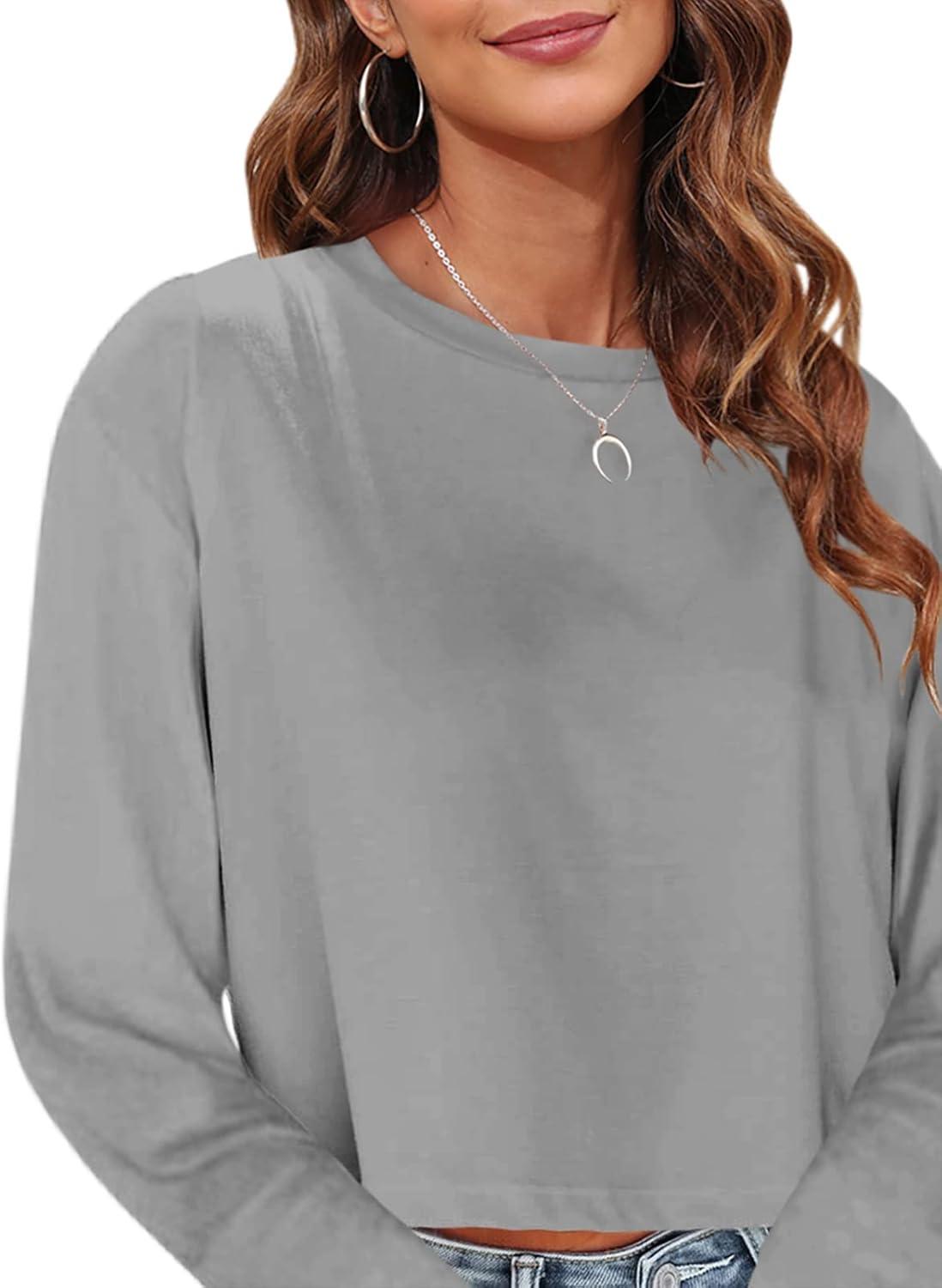 Tankaneo Womens Long Sleeve Crop Tops Loose Fit Fall Cropped Tshirt 2025 Crew Neck Casual Shirts(06-gray)