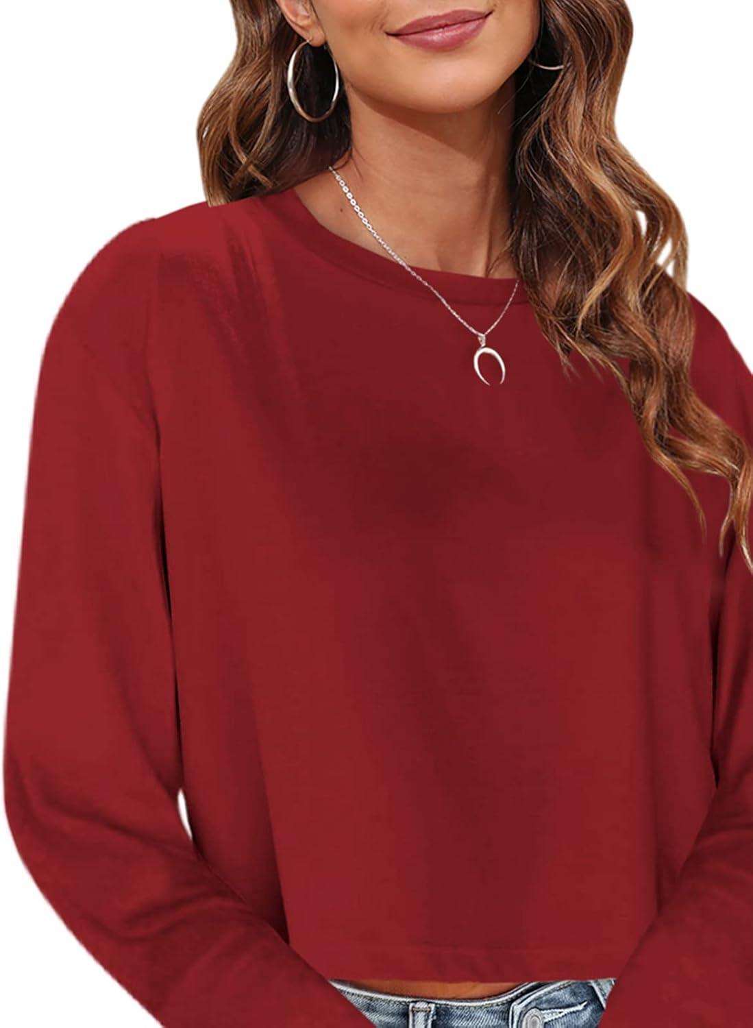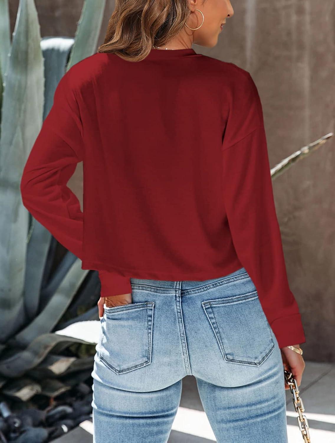Tankaneo Womens Long Sleeve Crop Tops Loose Fit Fall Cropped Tshirt 2025 Crew Neck Casual Shirts(08-red)