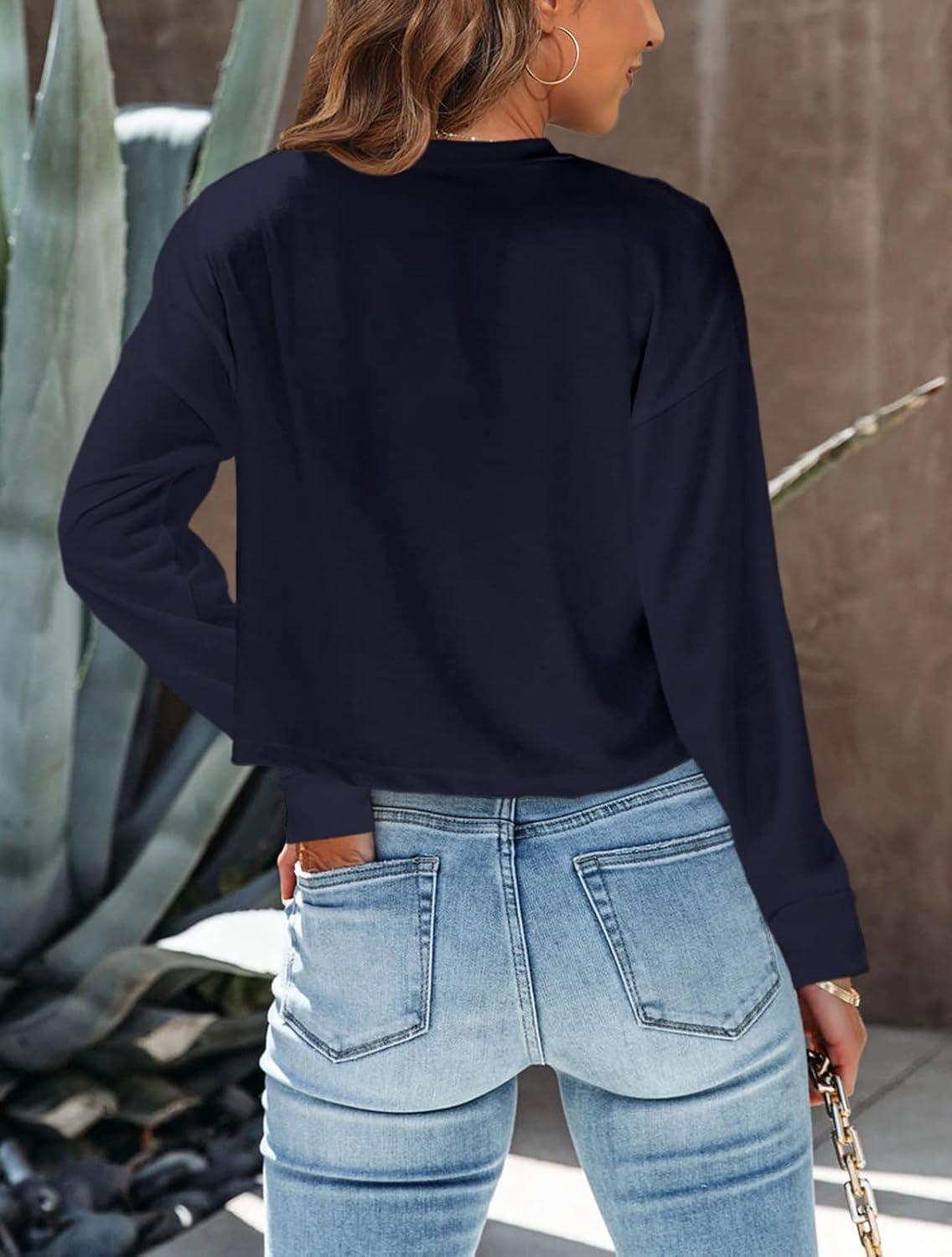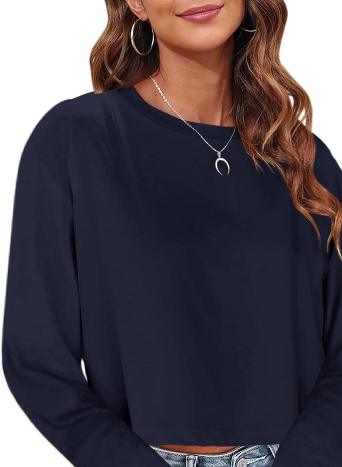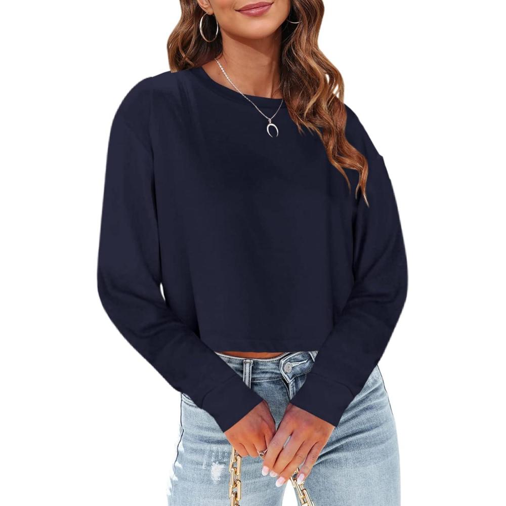 Tankaneo Womens Long Sleeve Crop Tops Loose Fit Fall Cropped Tshirt 2025 Crew Neck Casual Shirts(10-dark Blue)