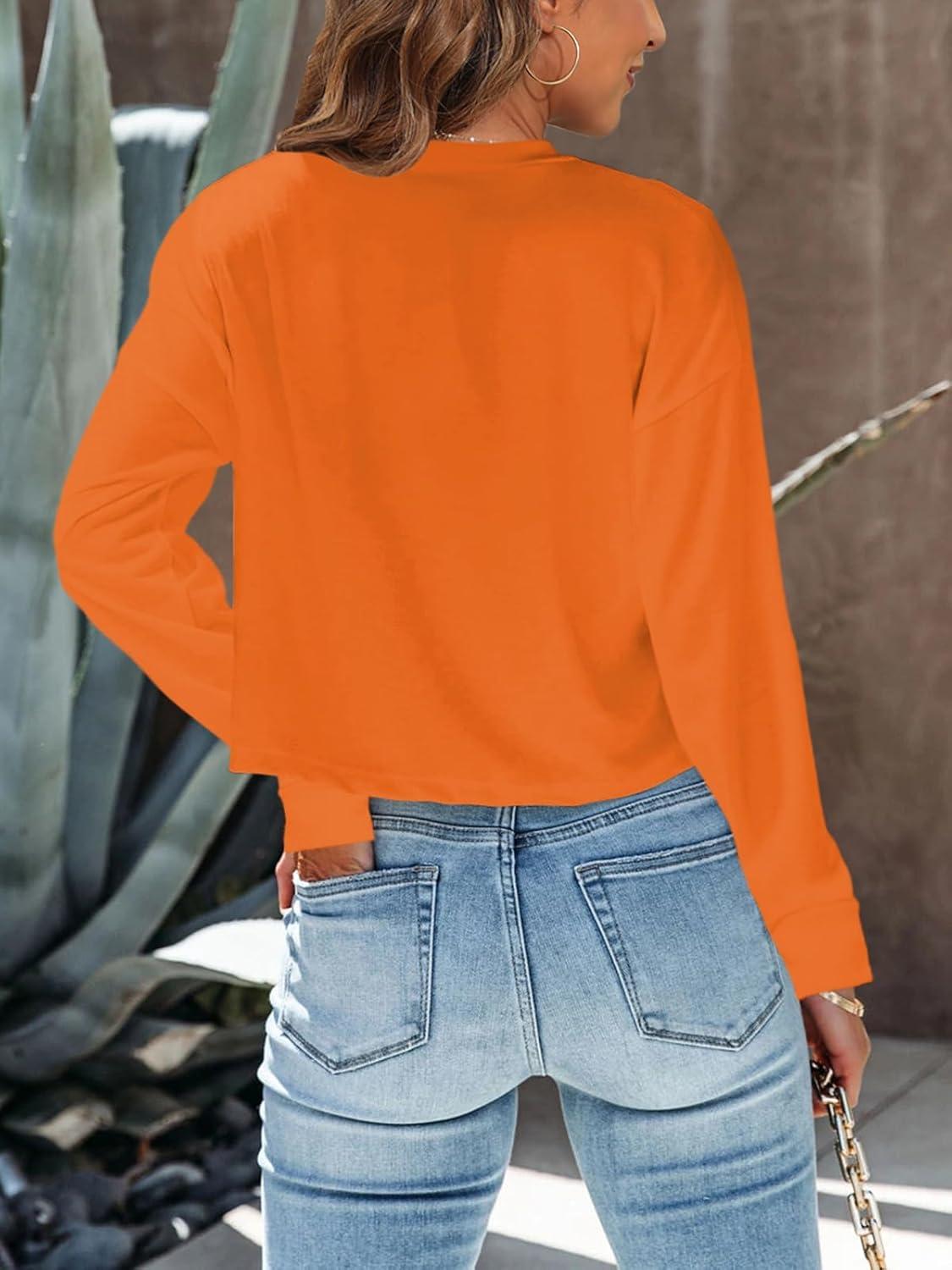 Tankaneo Womens Long Sleeve Crop Tops Loose Fit Fall Cropped Tshirt 2025 Crew Neck Casual Shirts(24-orange)