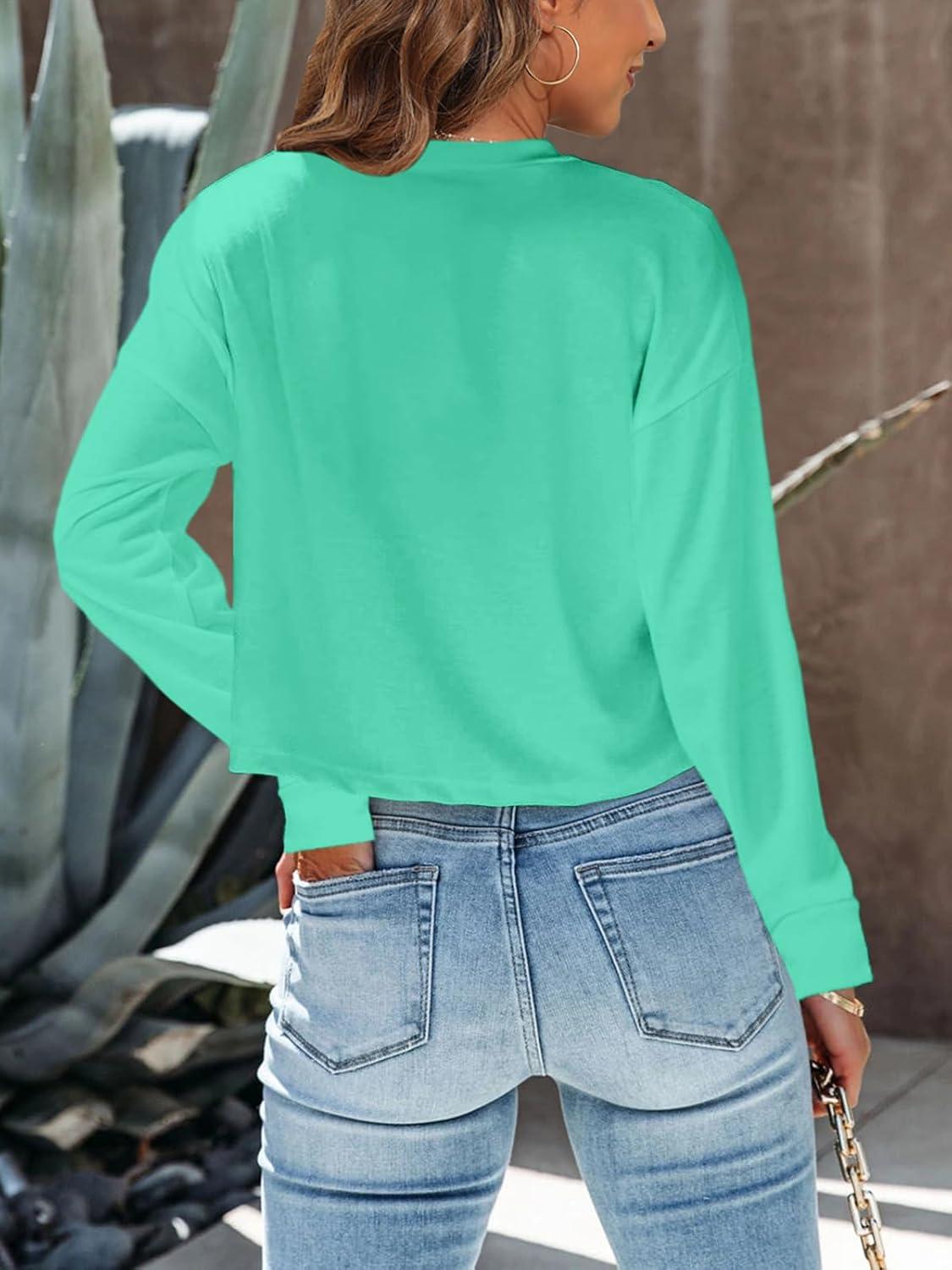Tankaneo Womens Long Sleeve Crop Tops Loose Fit Fall Cropped Tshirt 2025 Crew Neck Casual Shirts(28-mint Green)