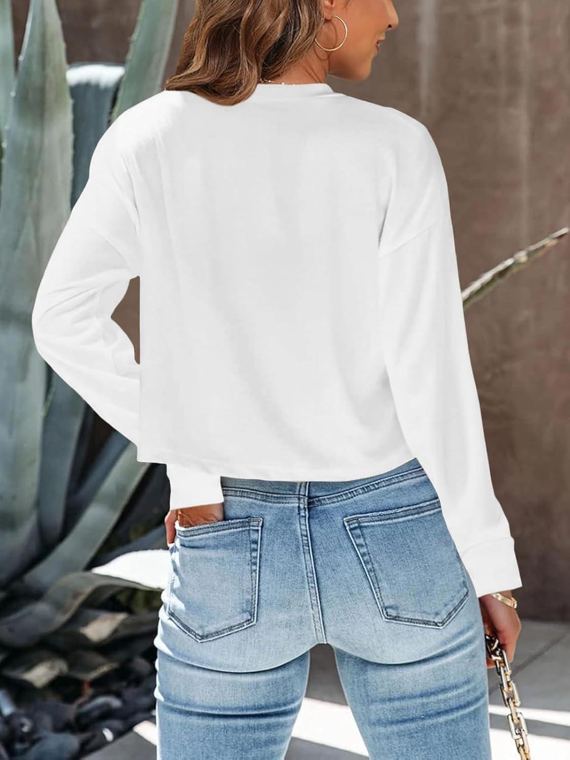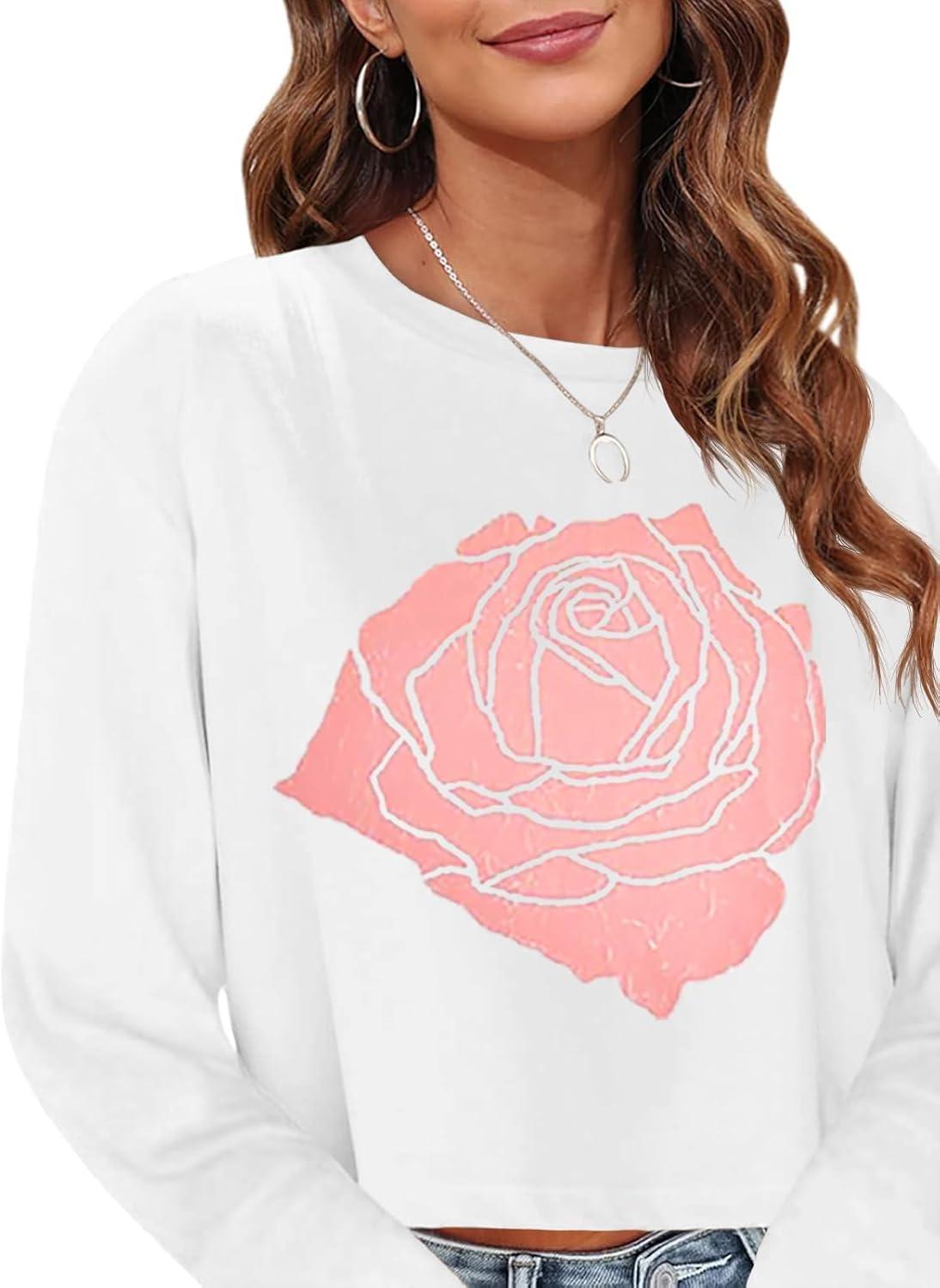 Tankaneo Womens Long Sleeve Crop Tops Loose Fit Fall Cropped Tshirt 2025 Crew Neck Casual Shirts(Floral-white)