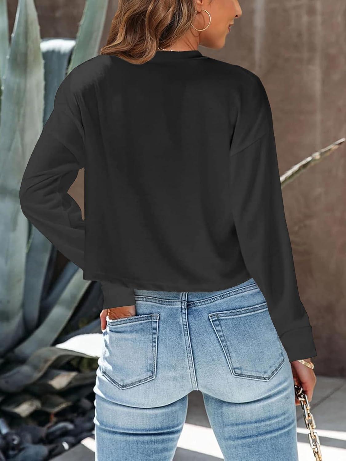 Tankaneo Womens Long Sleeve Crop Tops Loose Fit Fall Cropped Tshirt 2025 Crew Neck Casual Shirts(Heart-black)