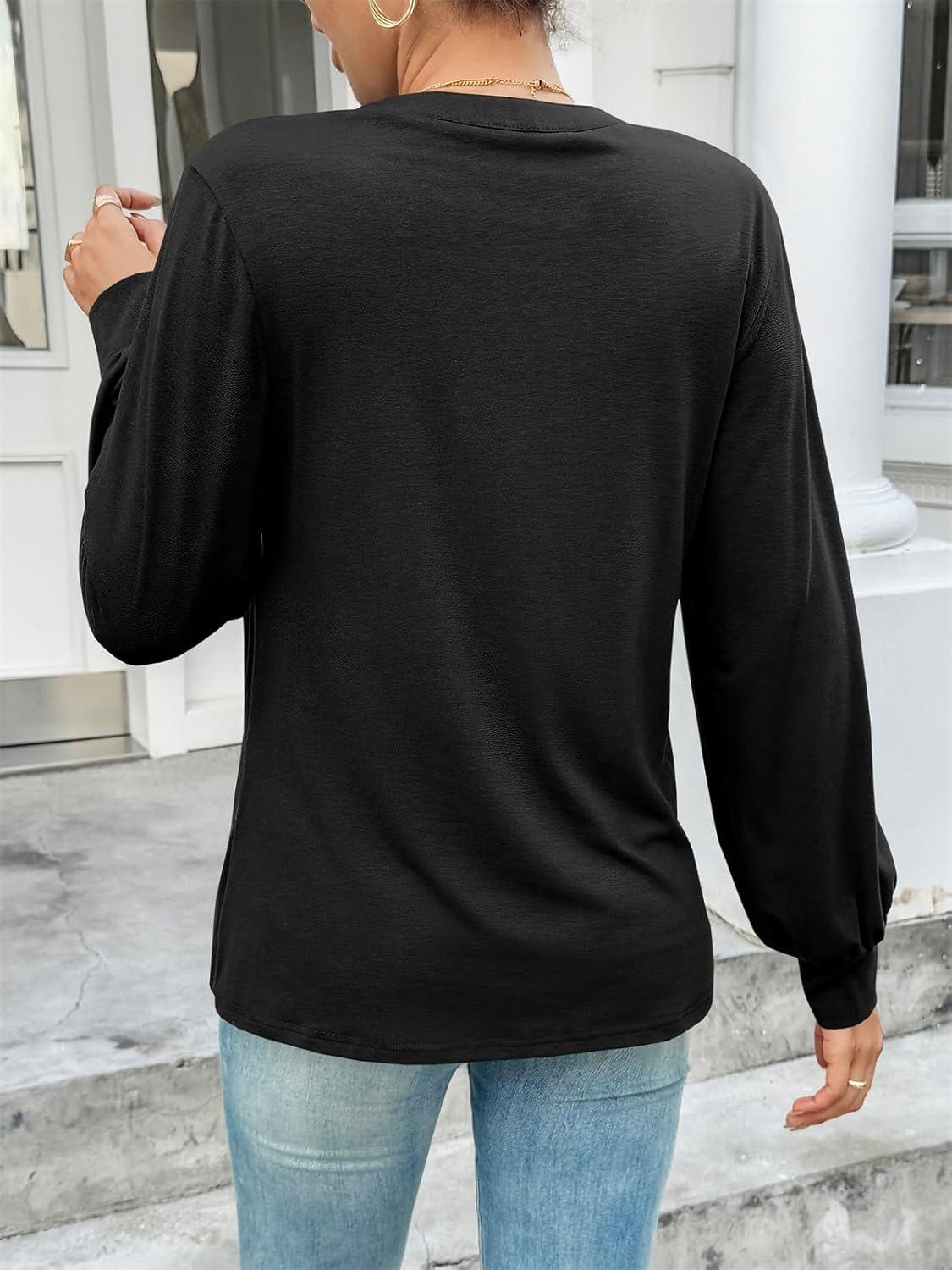 Tankaneo Womens Long Sleeve Henley Shirts Dressy Casual V Neck Tunic Tops Loose Fit Basic Tees T-Shirts(Black)