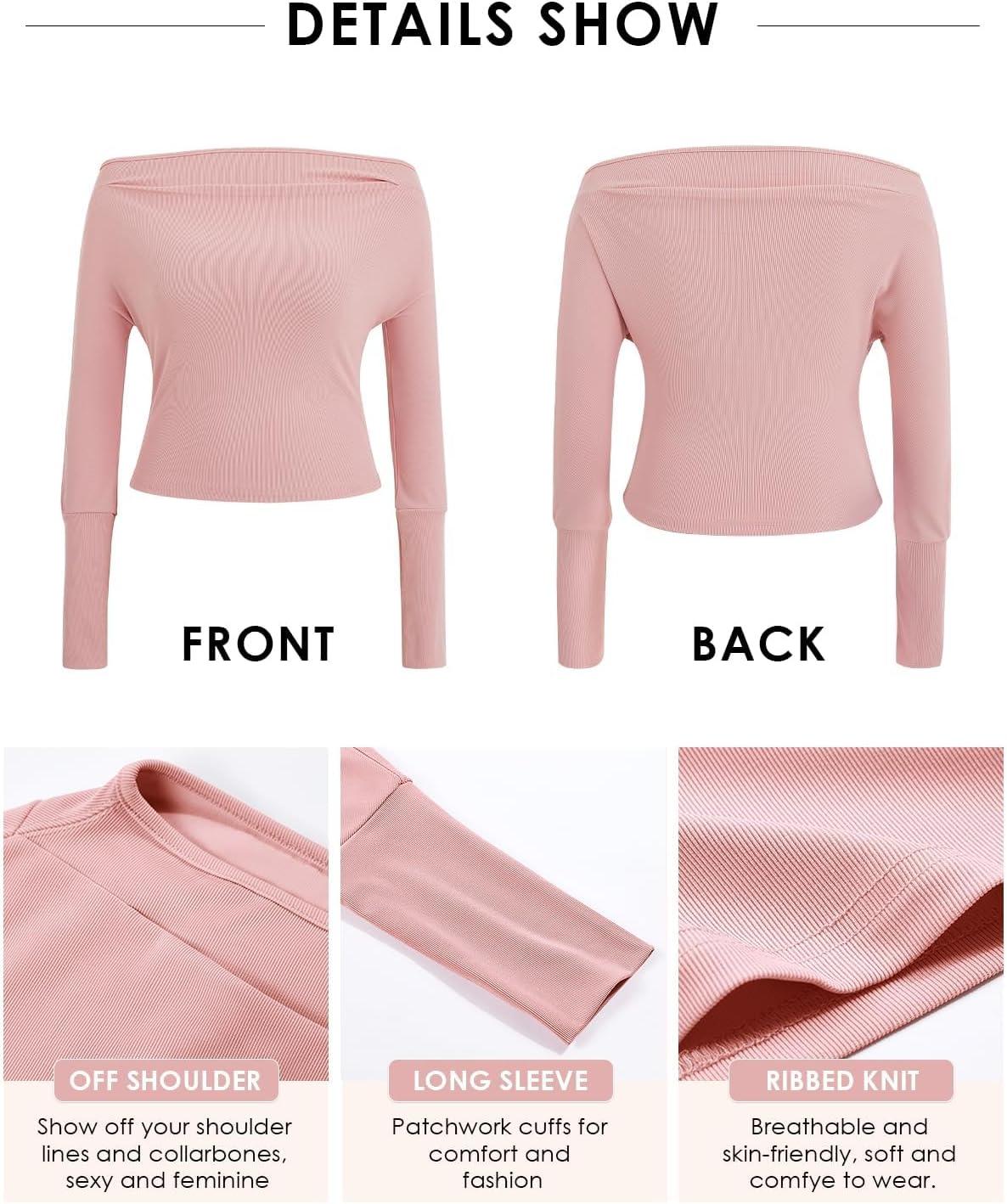 Tankaneo Women’s Long Sleeve Shirts Off Shoulder Going Out Crop Tops Sexy Y2K T Shirts(Purple)