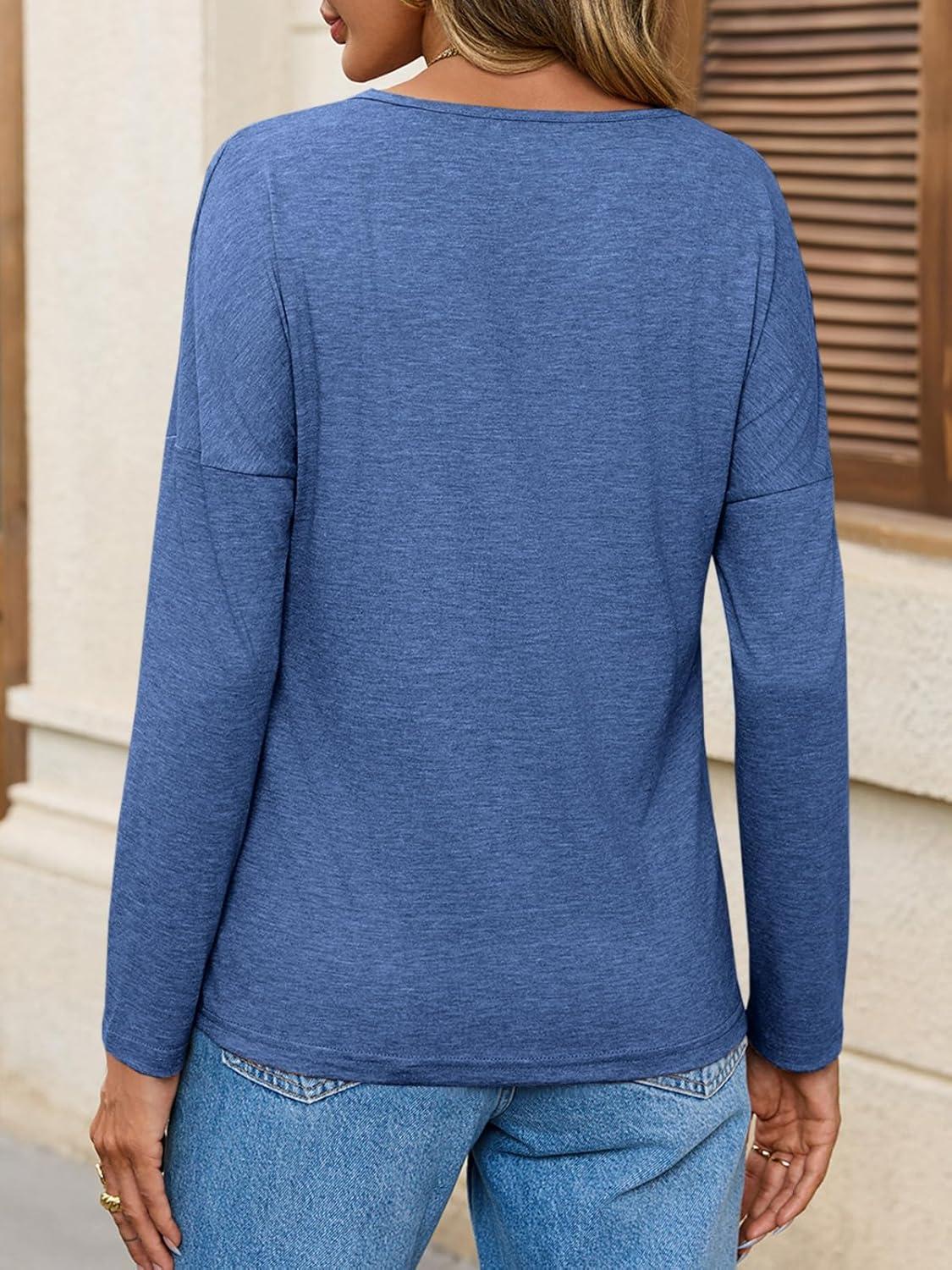 Tankaneo Womens Long Sleeve T-Shirts Casual V Neck Loose Fit Shirts 2025 Fall Lightweight Basic Tees(Navy)
