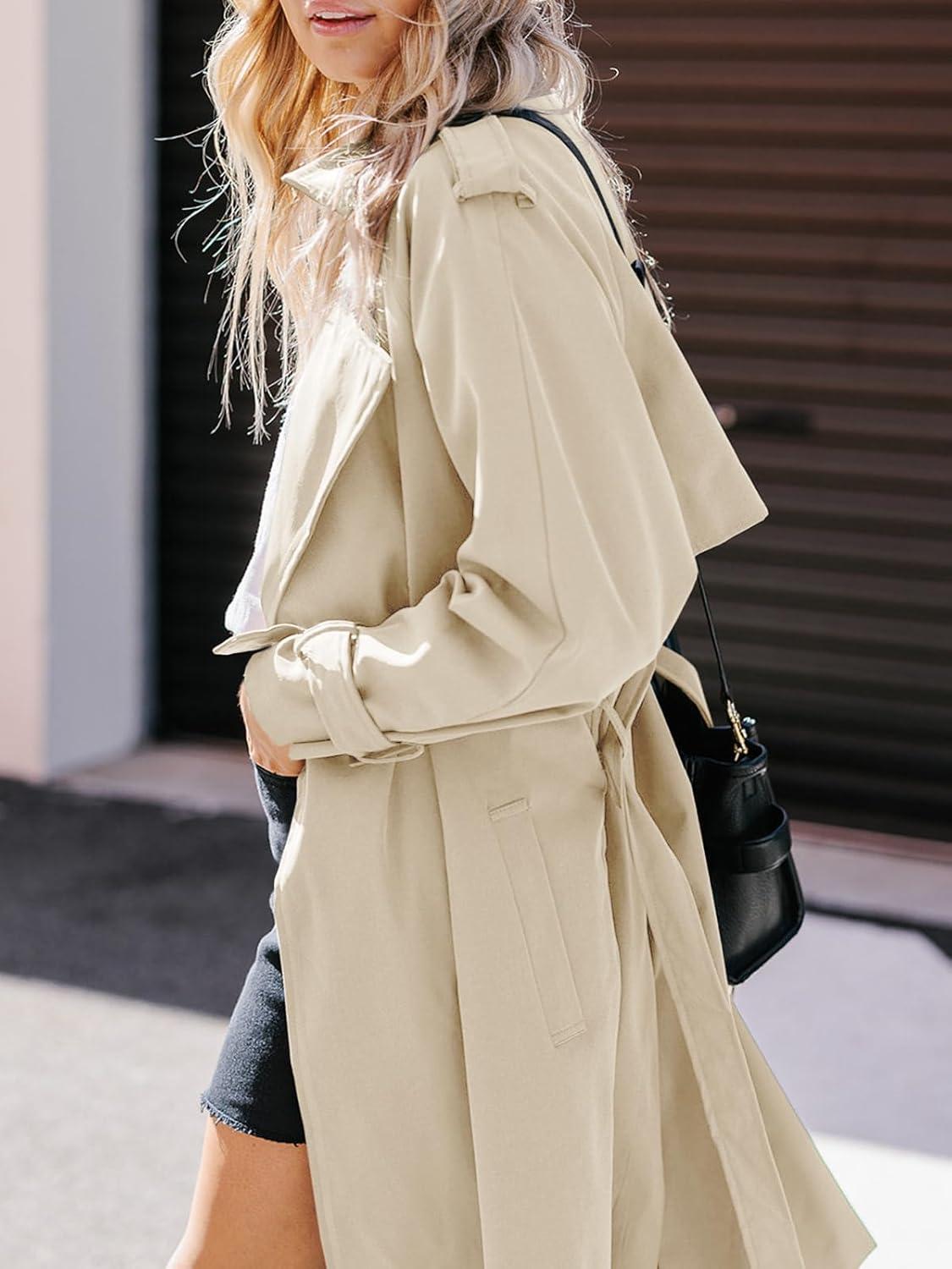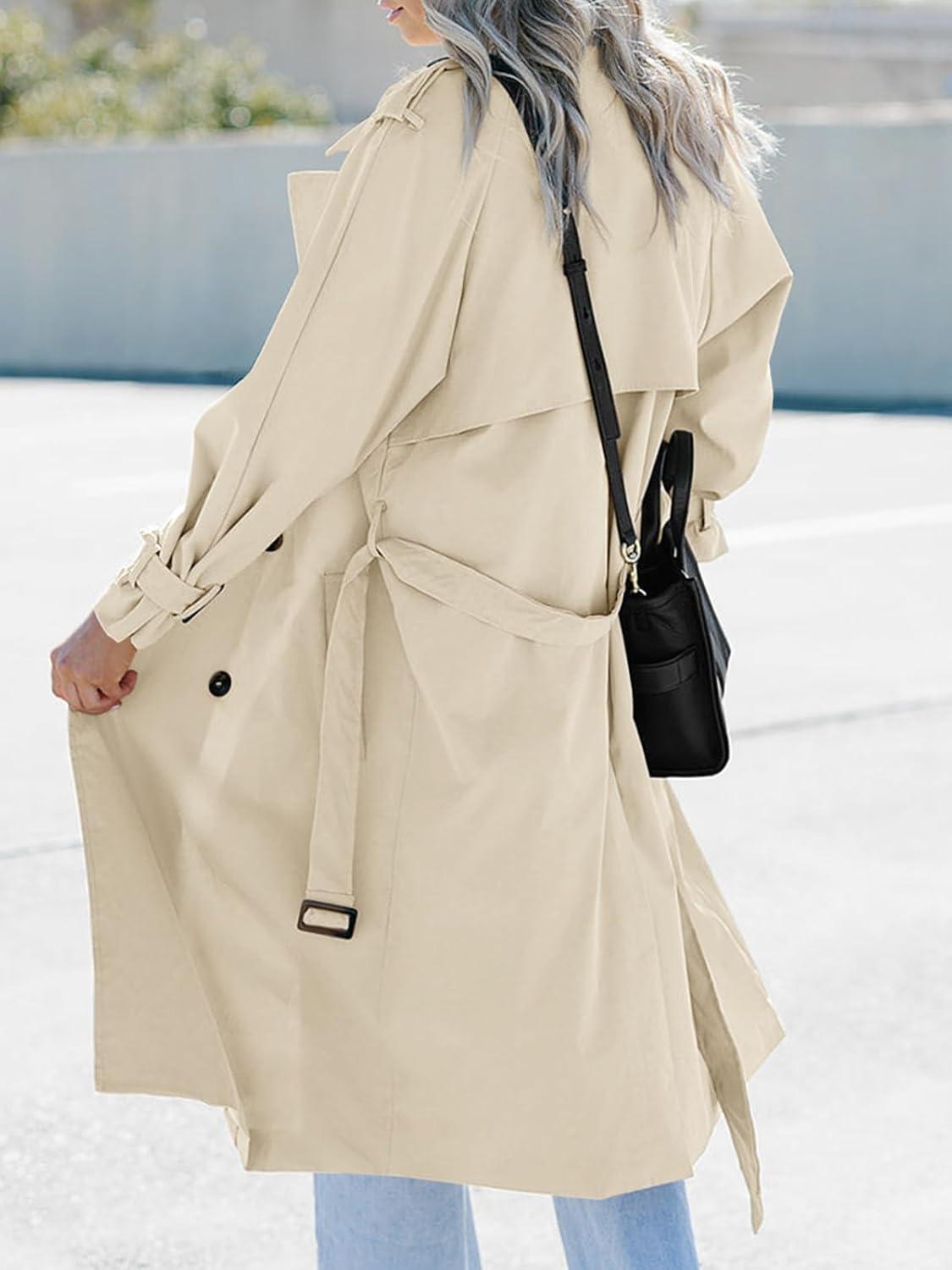 Tankaneo Womens Long Trench Coat Double Breasted Notch Lapel Lightweight Oversized Windproof Fall Overcoat with Belt(Apricot)