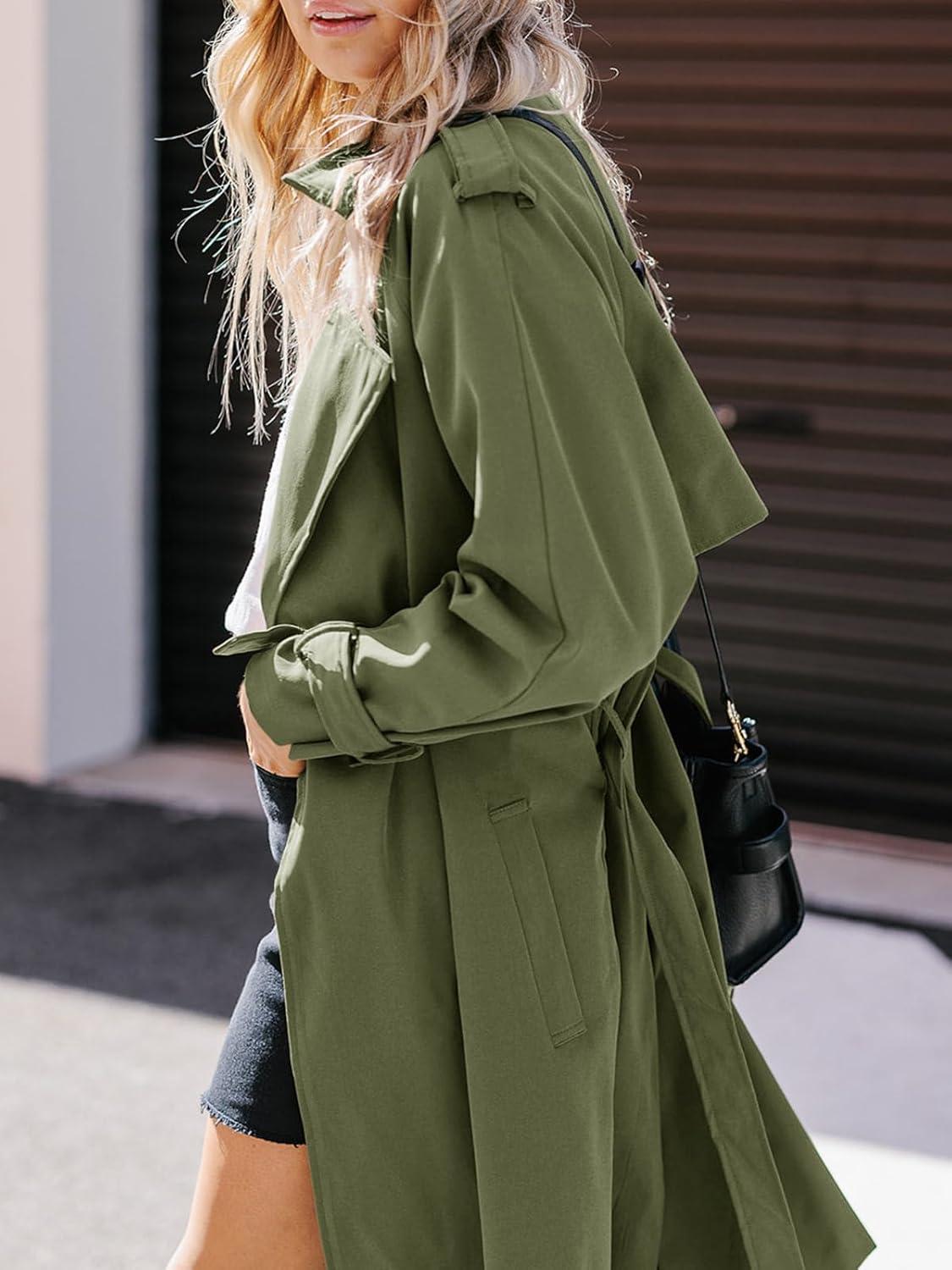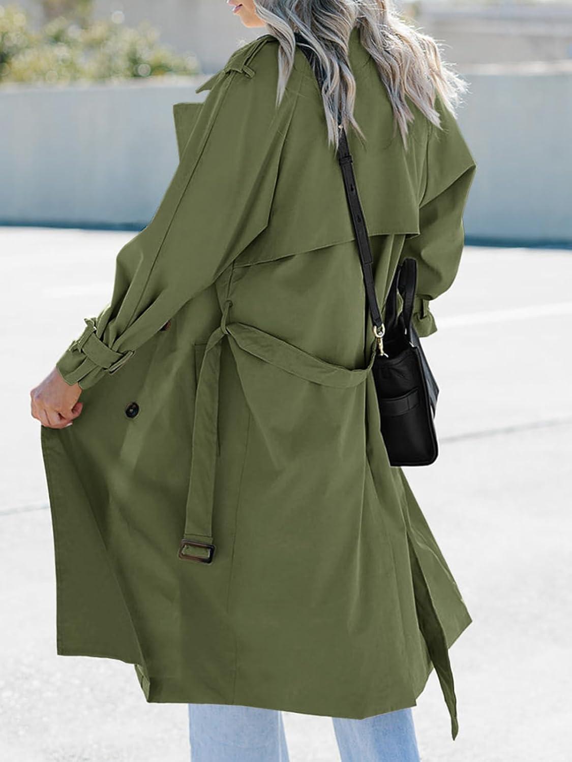 Tankaneo Womens Long Trench Coat Double Breasted Notch Lapel Lightweight Oversized Windproof Fall Overcoat with Belt(Army Green)