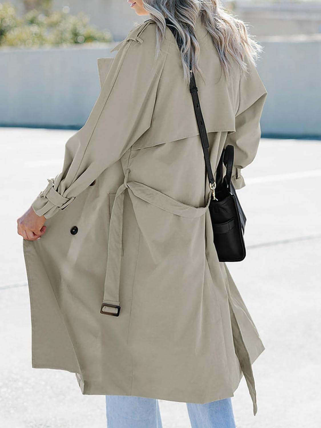 Tankaneo Womens Long Trench Coat Double Breasted Notch Lapel Lightweight Oversized Windproof Fall Overcoat with Belt(Khaki)
