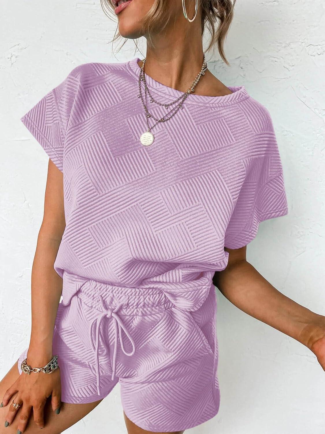 Tankaneo Womens Loungewear Set Short Sleeve Tops and Shorts 2 Piece Outfits Matching Lounge Pajama Set with Pockets(Lavender)