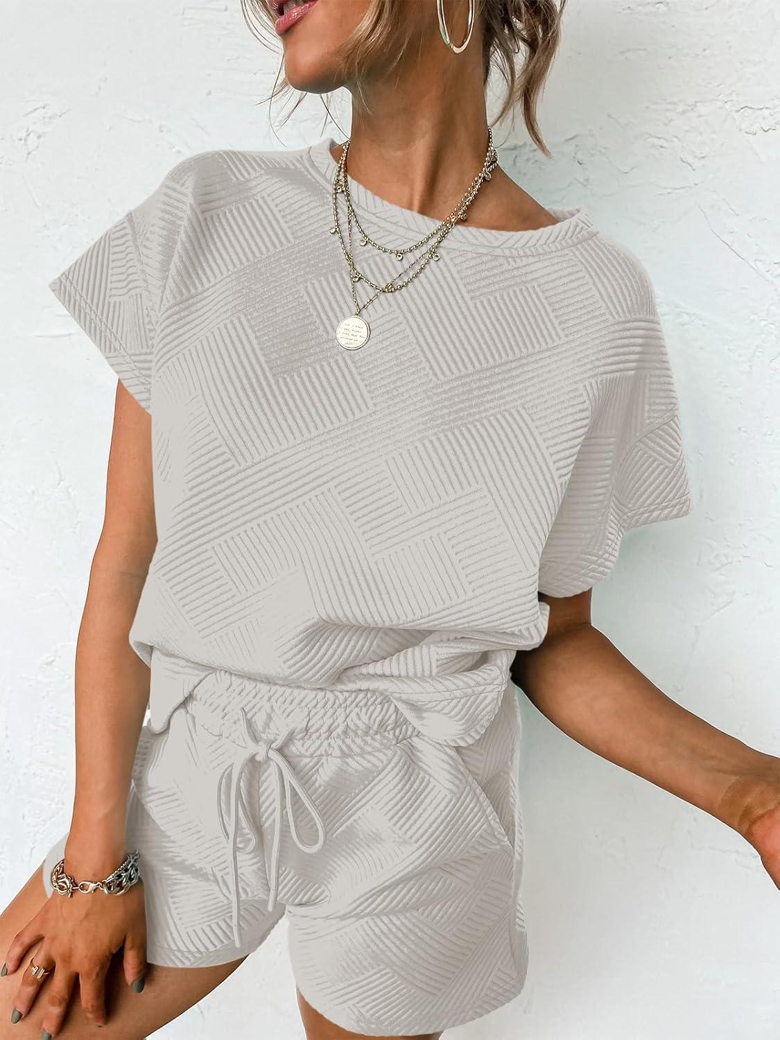 Tankaneo Womens Loungewear Set Short Sleeve Tops and Shorts 2 Piece Outfits Matching Lounge Pajama Set with Pockets(Light Grey)