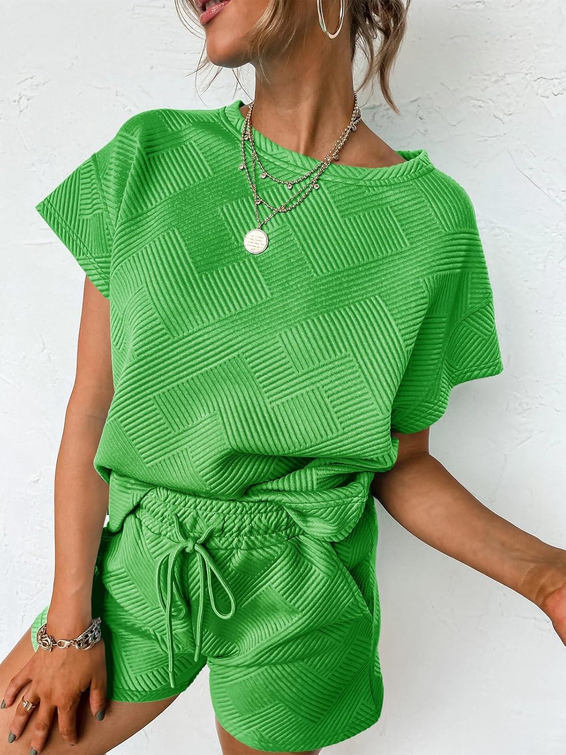 Tankaneo Womens Loungewear Set Short Sleeve Tops and Shorts 2 Piece Outfits Matching Lounge Pajama Set with Pockets(Olive Drab)