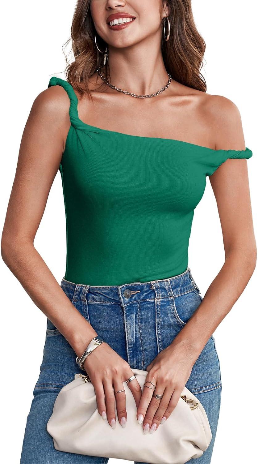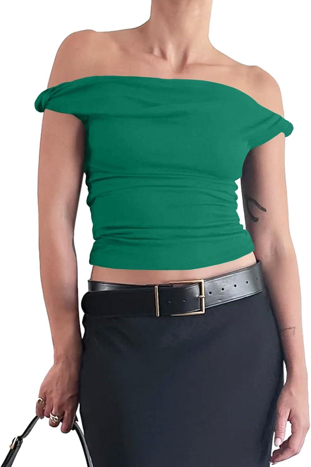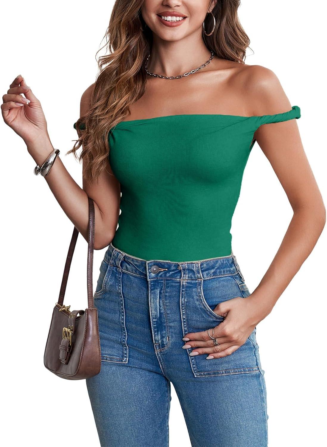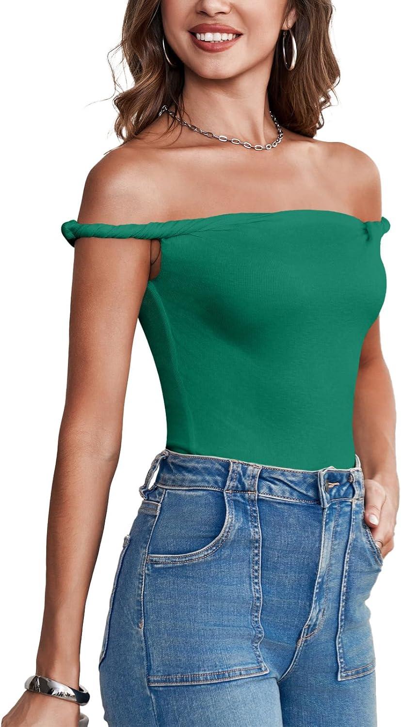 Tankaneo Womens Off The Shoulder Top Sleeveless Slim Fit Stretchy Tank Top Y2k Casual T Shirts(Blackish Green)