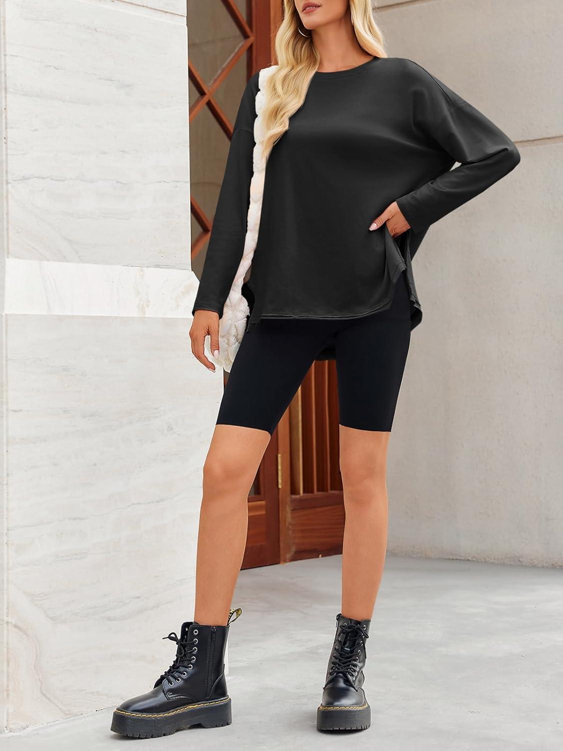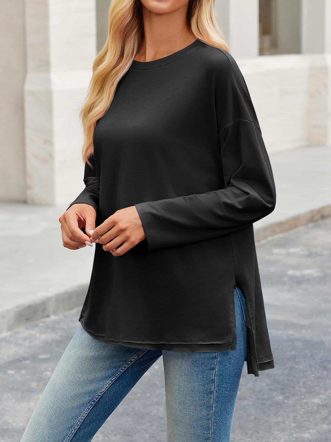 Tankaneo Womens Oversized Long Sleeve T Shirts 2025 Crewneck Basic Tee Loose Fit Tunic Tops Casual Fall Workout Clothes(Black)