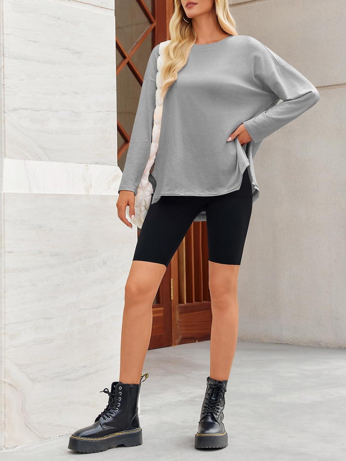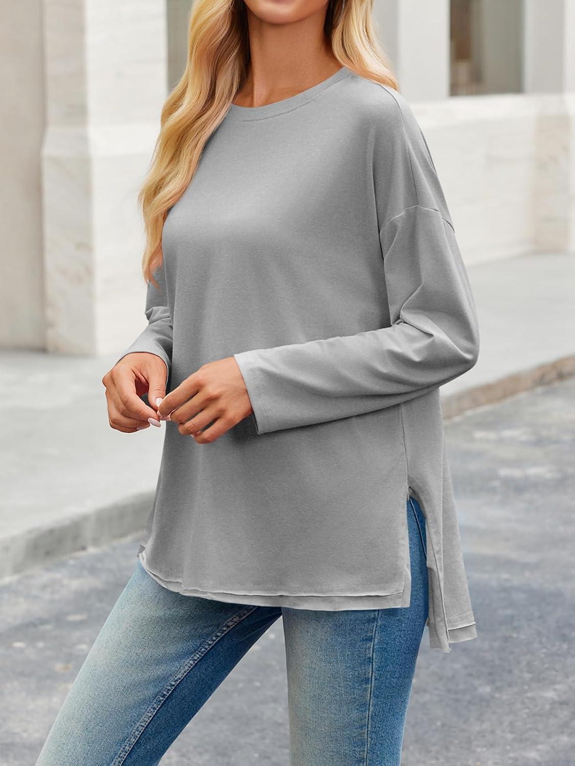 Tankaneo Womens Oversized Long Sleeve T Shirts 2025 Crewneck Basic Tee Loose Fit Tunic Tops Casual Fall Workout Clothes(Light Grey)