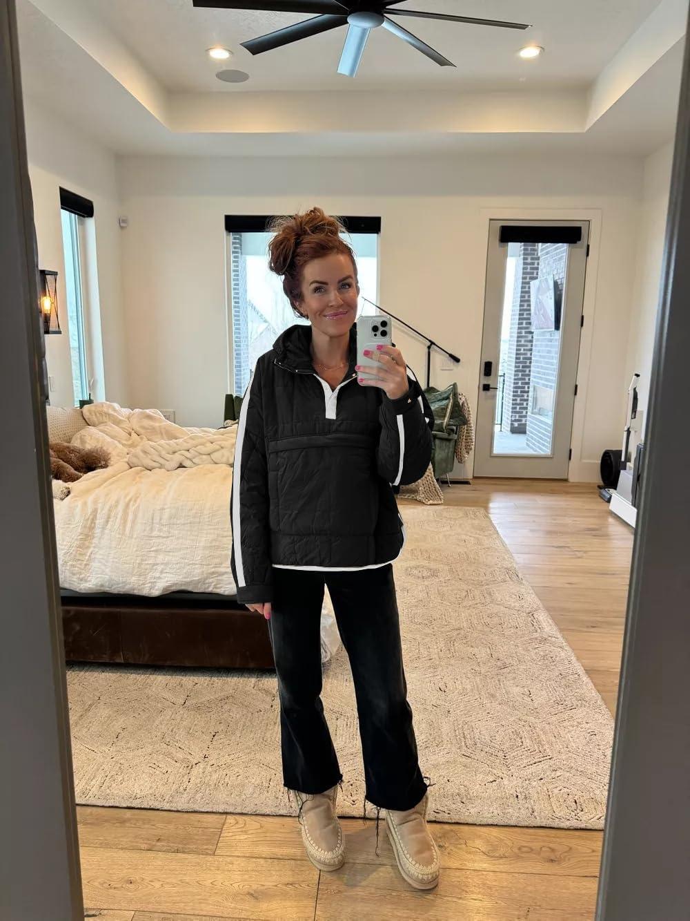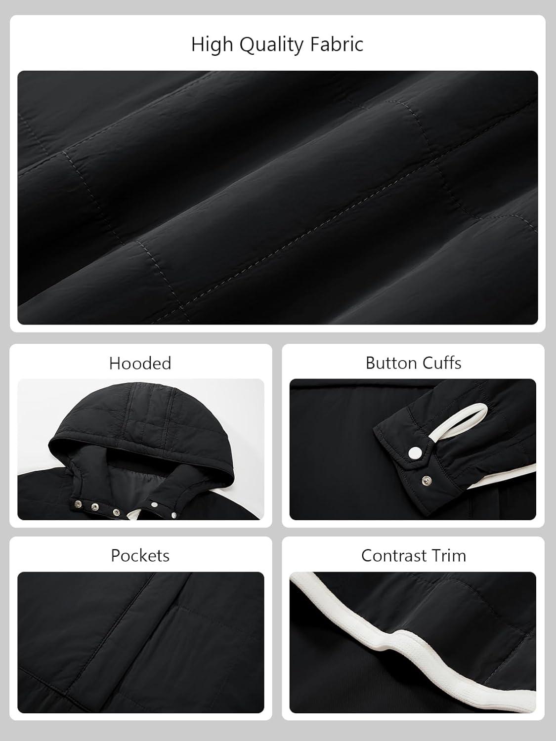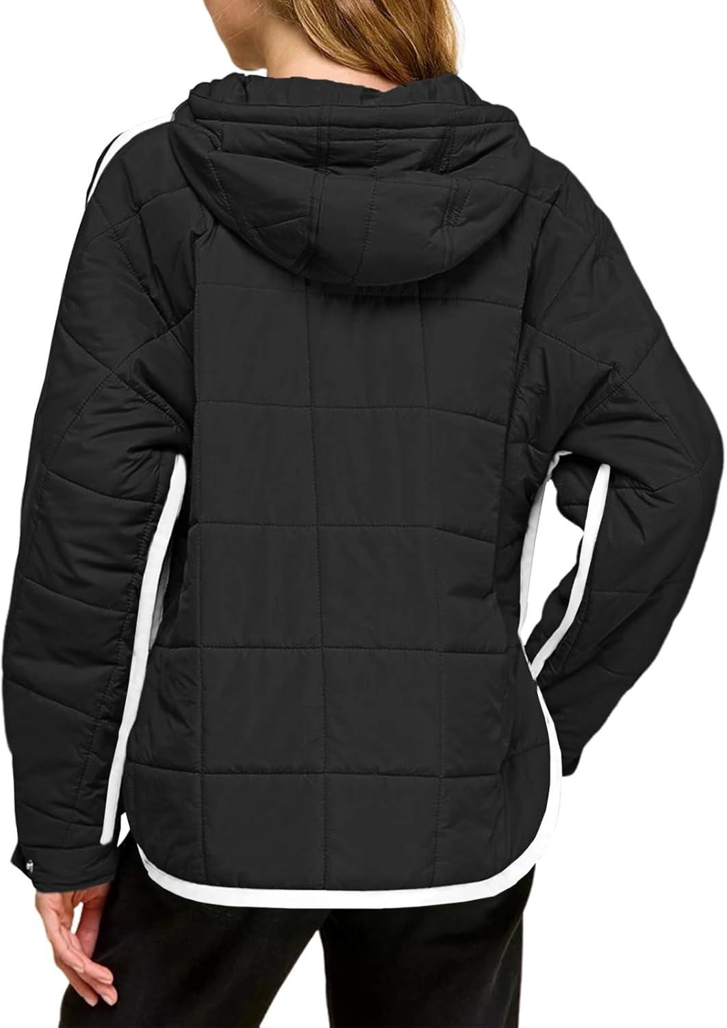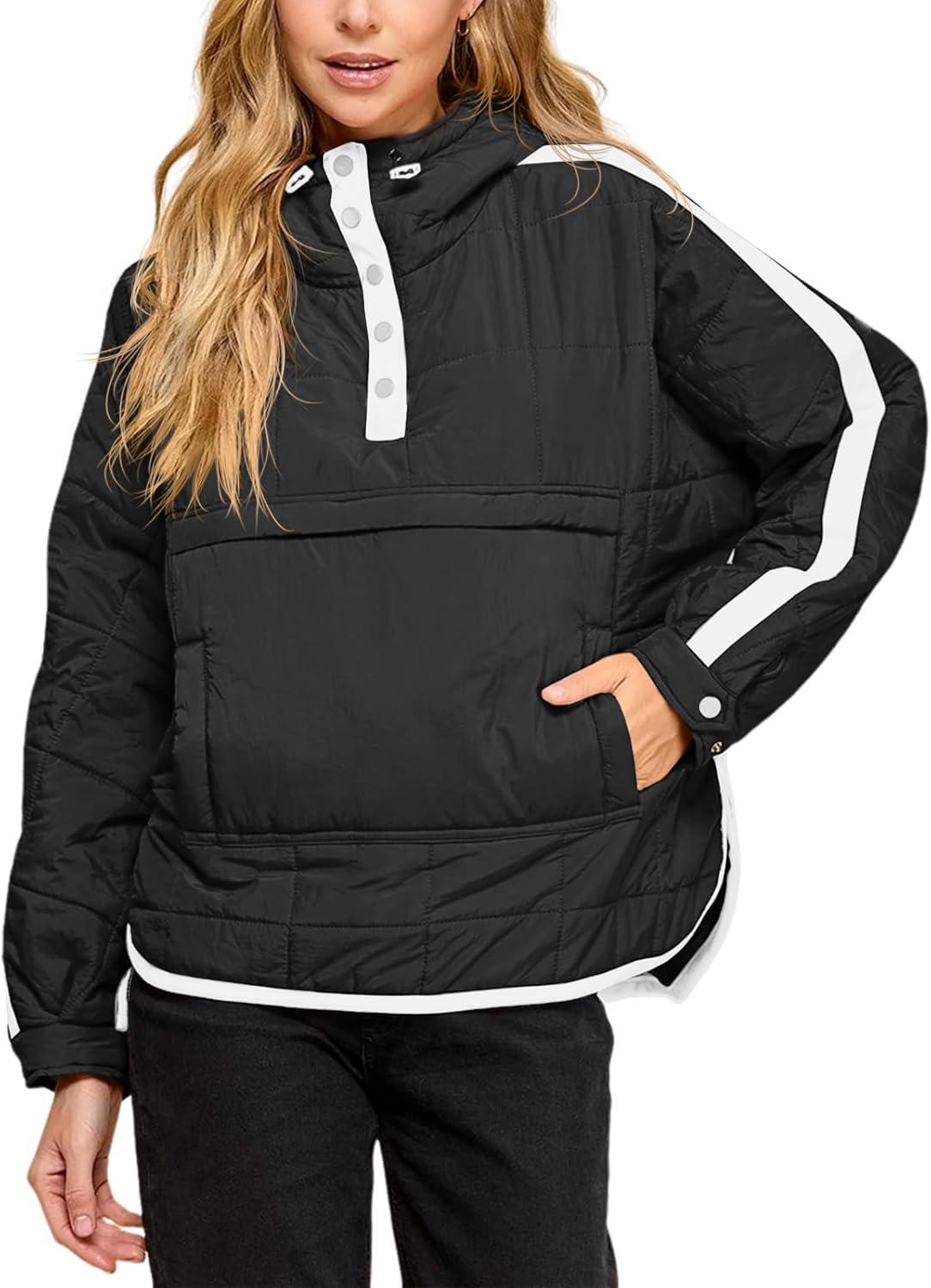 Tankaneo Womens Oversized Puffer Pullover Jacket Quilted Color Block Puffy Hooded Coat Fall Hoodies Outerwear with Pockets(Black)