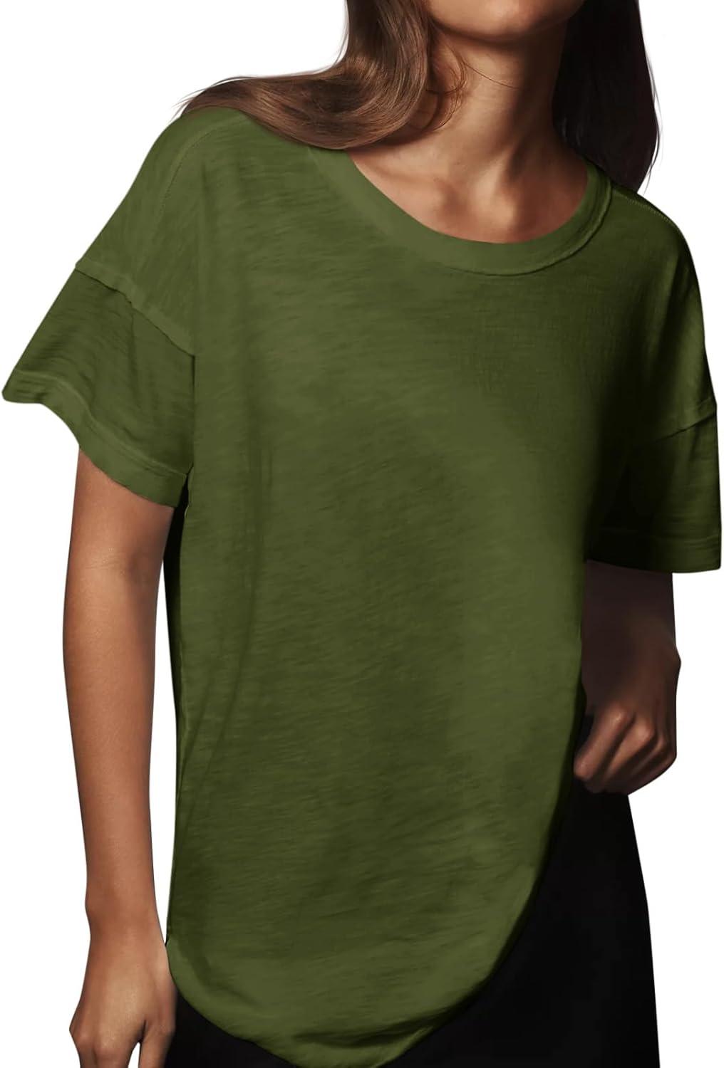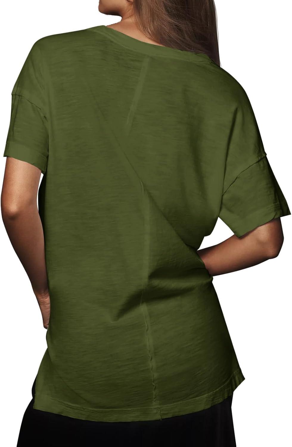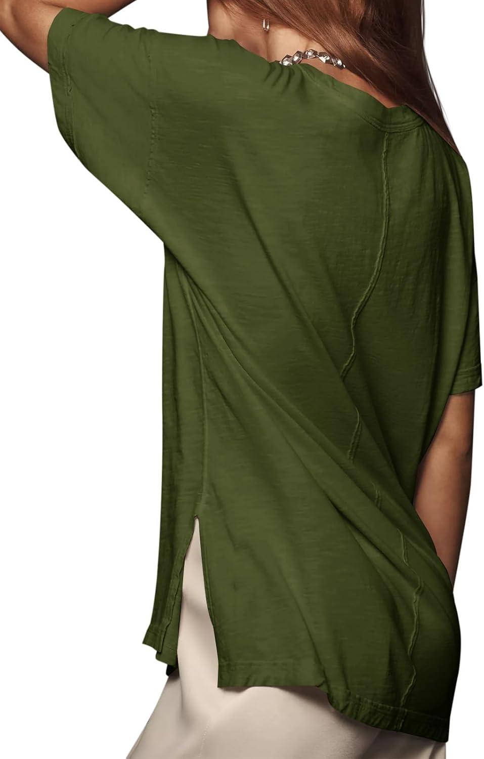 Tankaneo Womens Oversized Short Sleeve T Shirts Summer Casual Crew Neck Tunic Tops Loose Fit Basic Side Split Tees(Army Green)